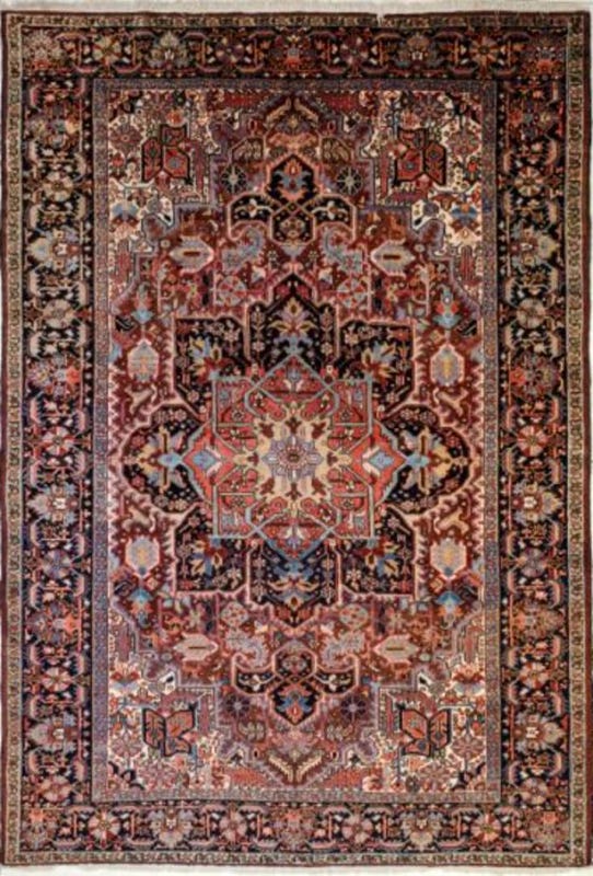 Alfombra anudada a mano por artesanos iranés, con un particular estilo de diseño que evita anudar las líneas curvas, tejiendo líneas perpendiculares, paralelas y oblícuas.