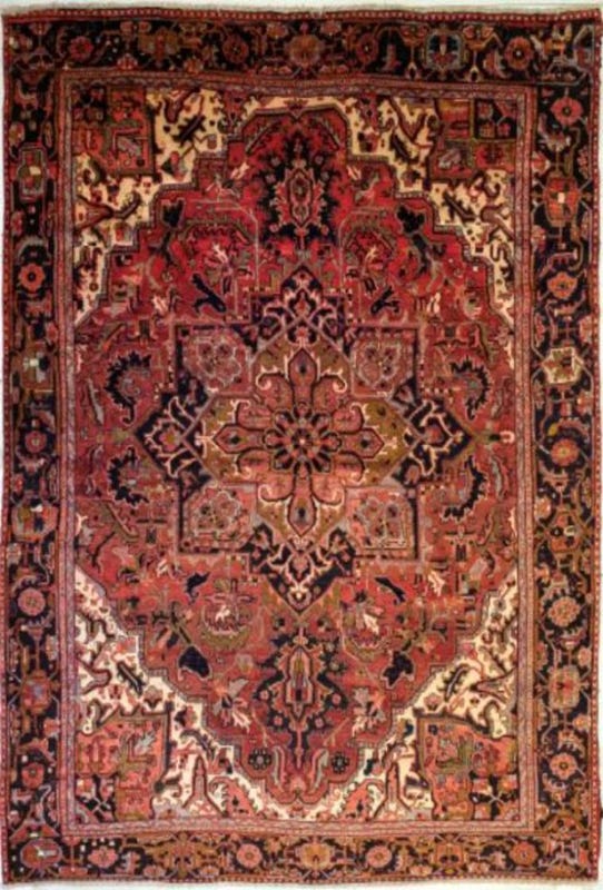 Alfombra anudada a mano por artesanos iranés, con un particular estilo de diseño que evita anudar las líneas curvas, tejiendo líneas perpendiculares, paralelas y oblícuas.