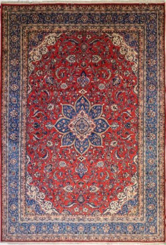 Alfombra anudada a mano por artesanos iraníes, a veces con medallón central o bien con motivos repetitivos, siendo el "HERAT" o flores encerradas en un rombo el más frecuente. Los colores usados suelen ser azul añil o rojo vivo.
