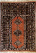 Alfombra anudada a mano por artesanos iraníes, con motivos florales y diseño de estilo clásico.
