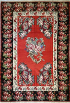 Alfombra tejida a mano por artesanos en telares. Poseen motivos florales naturalistas. Su estilo de diseño, que se remonta a principios del siglo XIX, se originó en la zona confluyente entre Moldavia y Rumania.