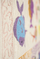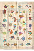 Alfombra Kelim Bazhars artesanal, tejida y bordada a mano por artesanos con lana natural de oveja. Sobre una base color crudo se bordan distintas figuras de animales y naturaleza, siendo cada ejemplar único e irrepetible.