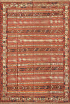 Alfombra tejida a mano en telares por artesanos iraníes, con patrones simples y trazados lineales.