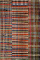 Alfombra hecha en base a una combinación de trozos de distintas alfombras anudadas a mano, modernizadas con tratamientos de teñido y carving, combinadas y cosidas por artesanos.