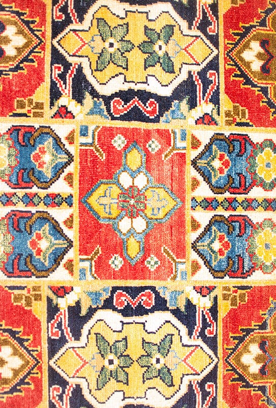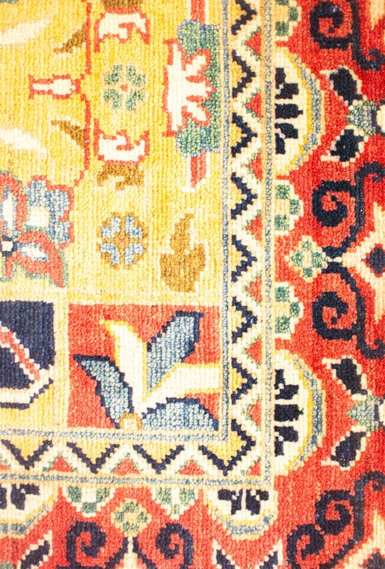 Alfombra anudada a mano por artesanos, con una mayor cantidad de nudos por cm2, diseños geométricos de estilo clásico y predominancia de tonos azules y rojos. Se originaron en el área de Kazak (Armenia) a principios del siglo XVIII.