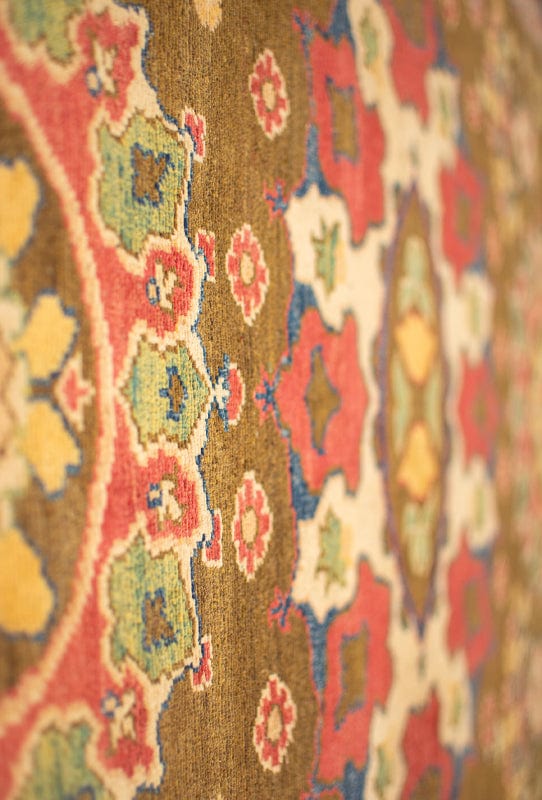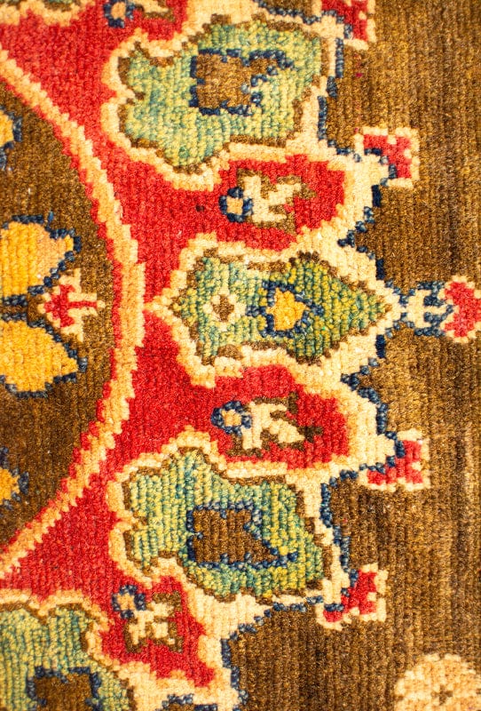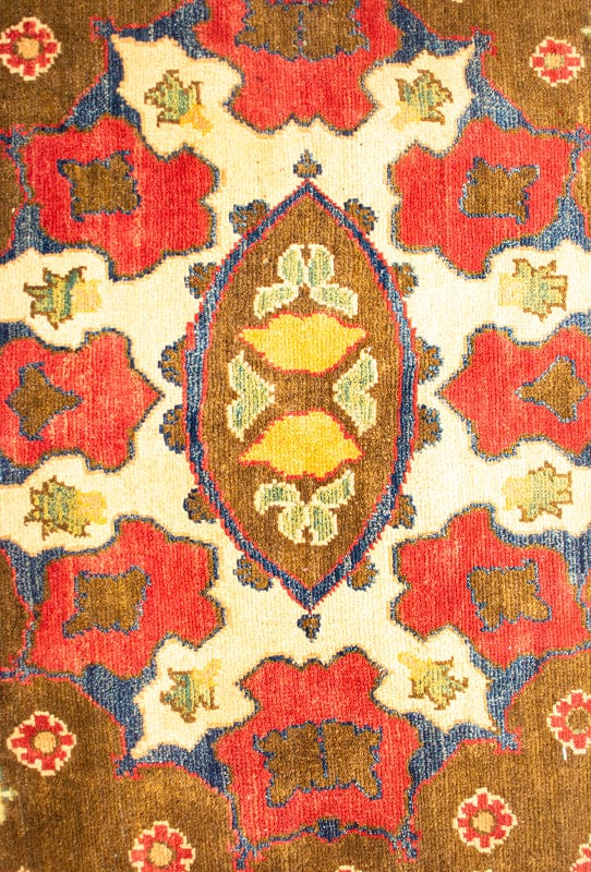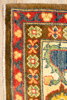 Alfombra anudada a mano por artesanos, diseños geométricos de estilo clásico y predominancia de tonos azules y rojos. Se originaron en el área de Kazak (Armenia) a principios del siglo XVIII.