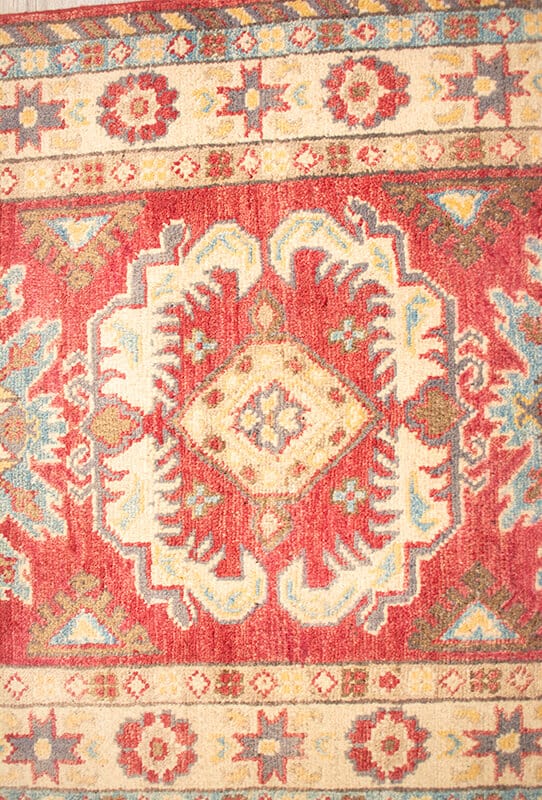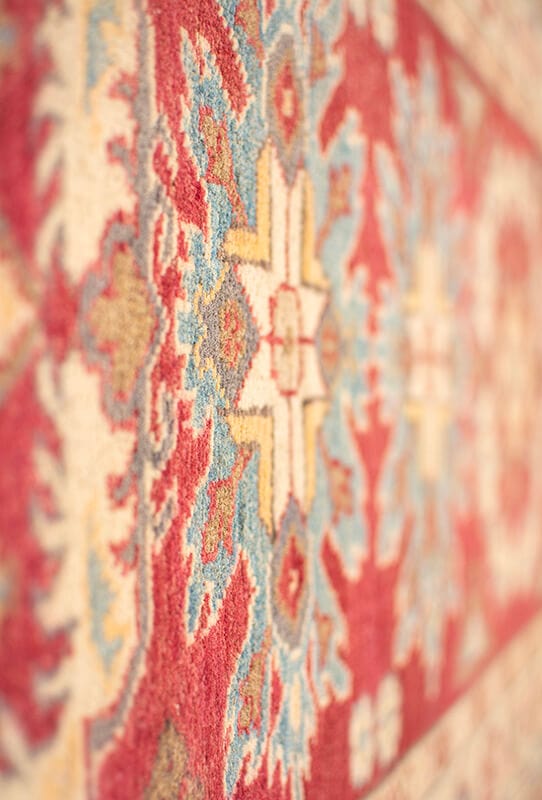 Alfombra anudada a mano por artesanos, con una mayor cantidad de nudos por cm2, diseños geométricos de estilo clásico y predominancia de tonos azules y rojos. Se originaron en el área de Kazak (Armenia) a principios del siglo XVIII.