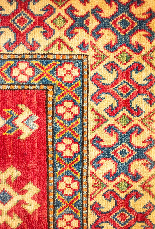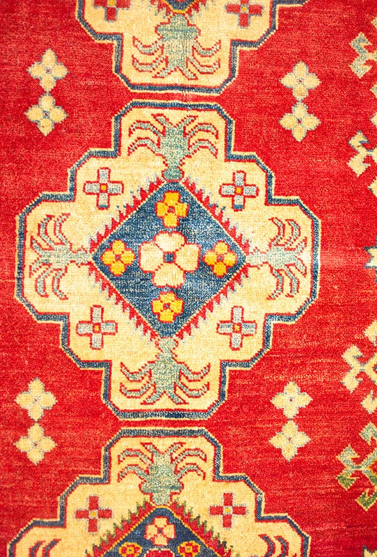 Alfombra anudada a mano por artesanos, con una mayor cantidad de nudos por cm2, diseños geométricos de estilo clásico y predominancia de tonos azules y rojos. Se originaron en el área de Kazak (Armenia) a principios del siglo XVIII.
