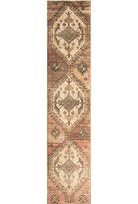 Alfombra anudada a mano por artesanos, reciclada y modernizada a través de tratamientos de teñido y carving, logrando un diseño clásico con colores y texturas modernas.