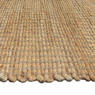 Una alfombra tejida a mano con hebras de jute crudo