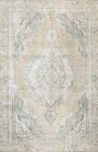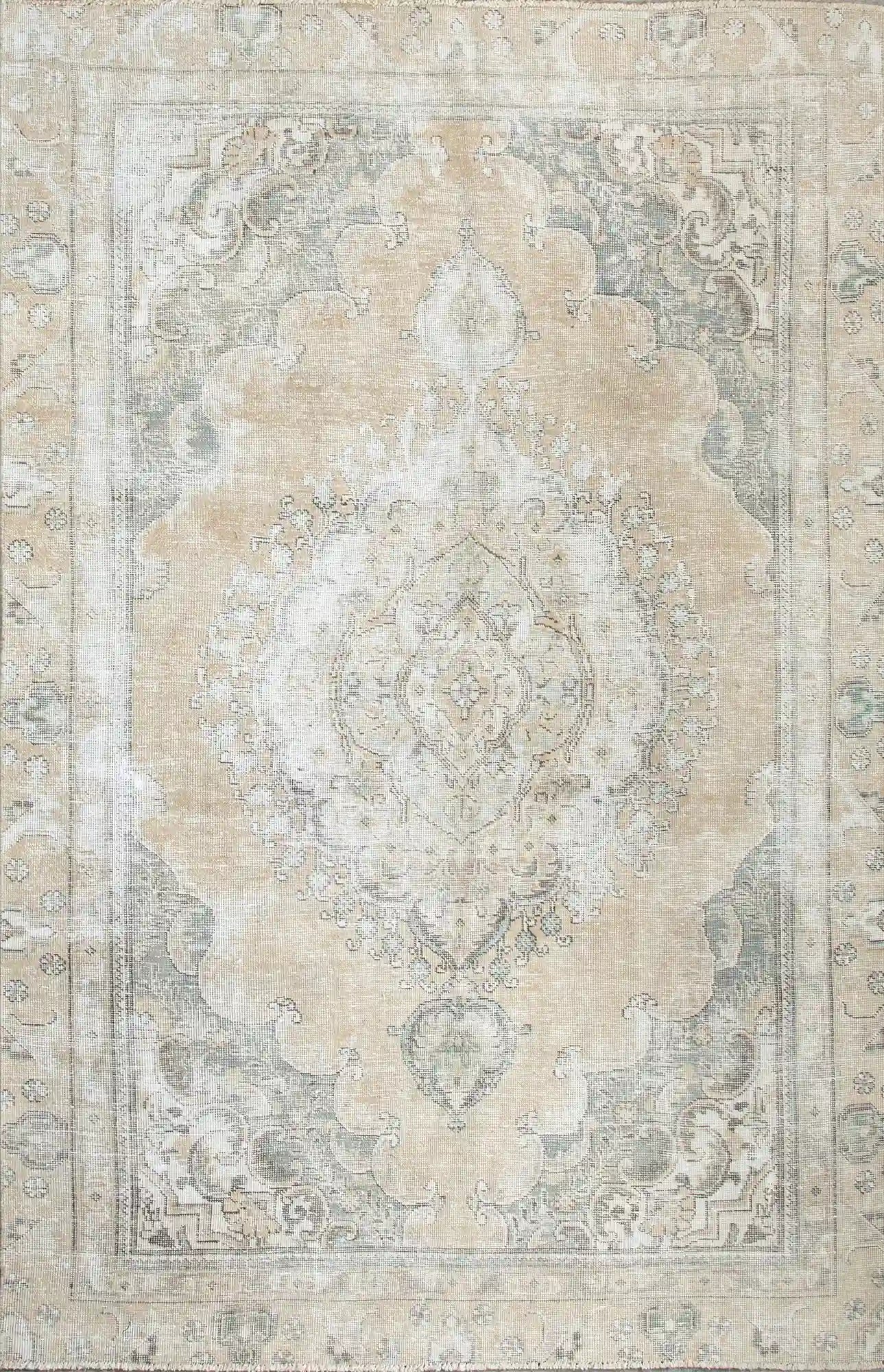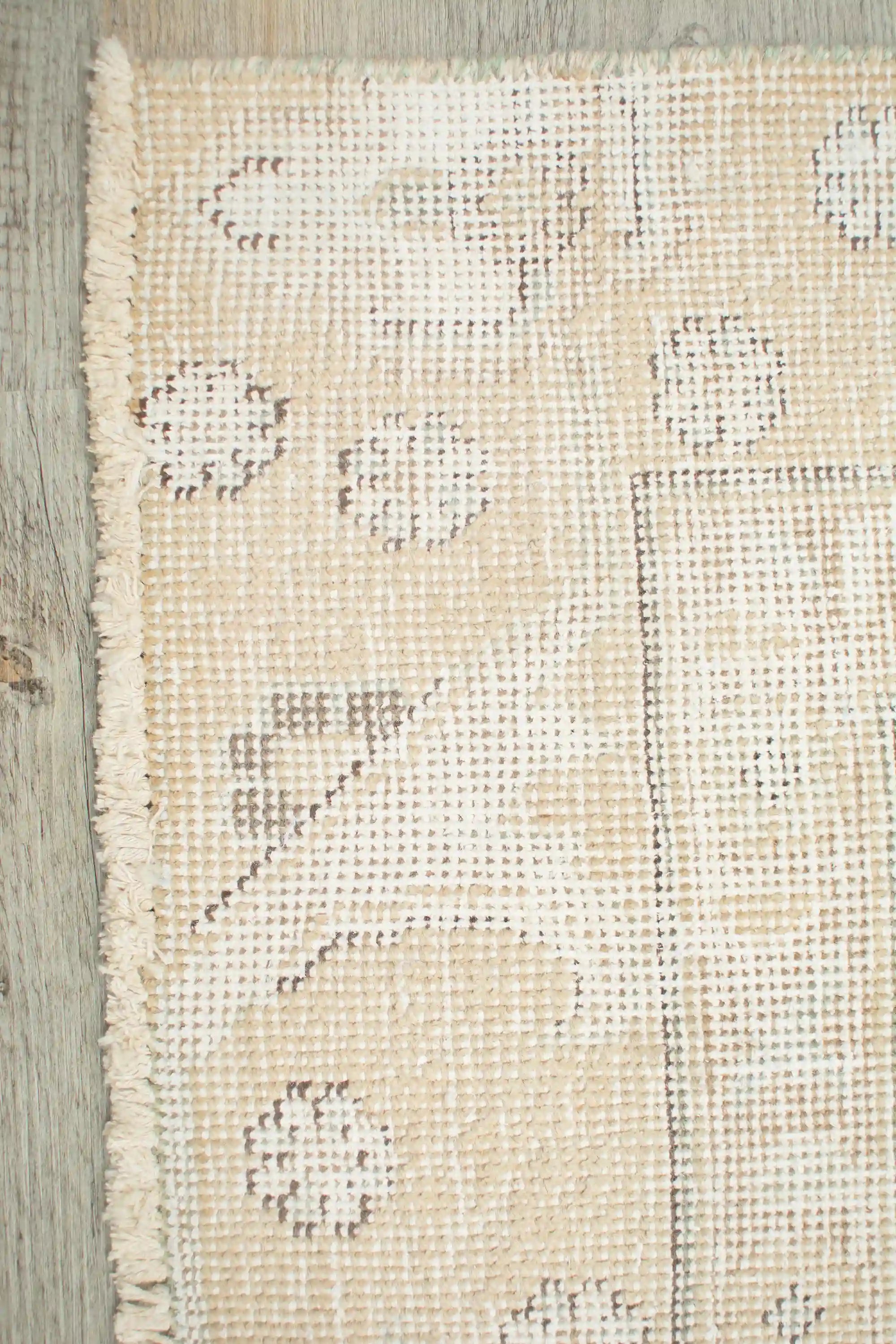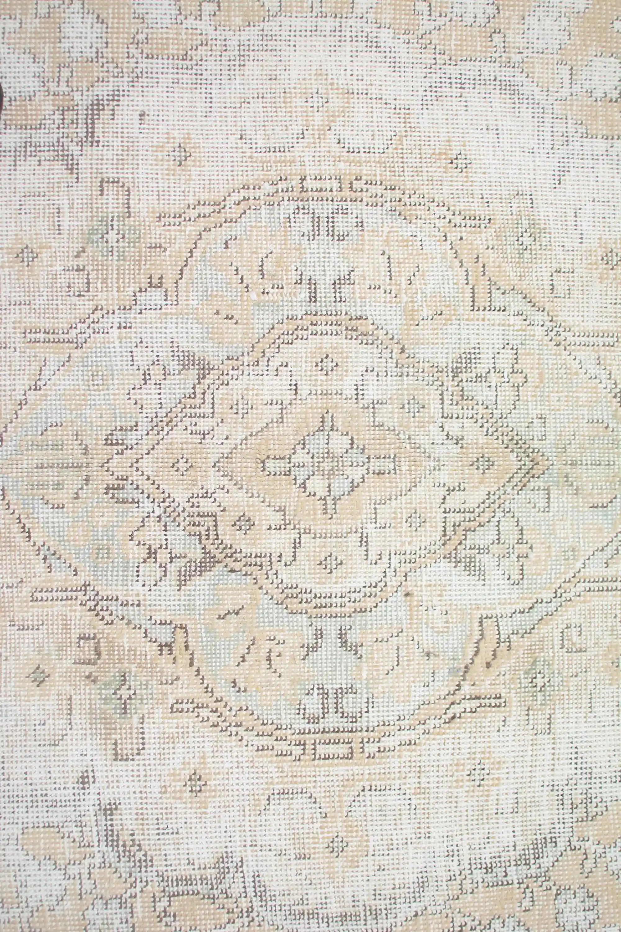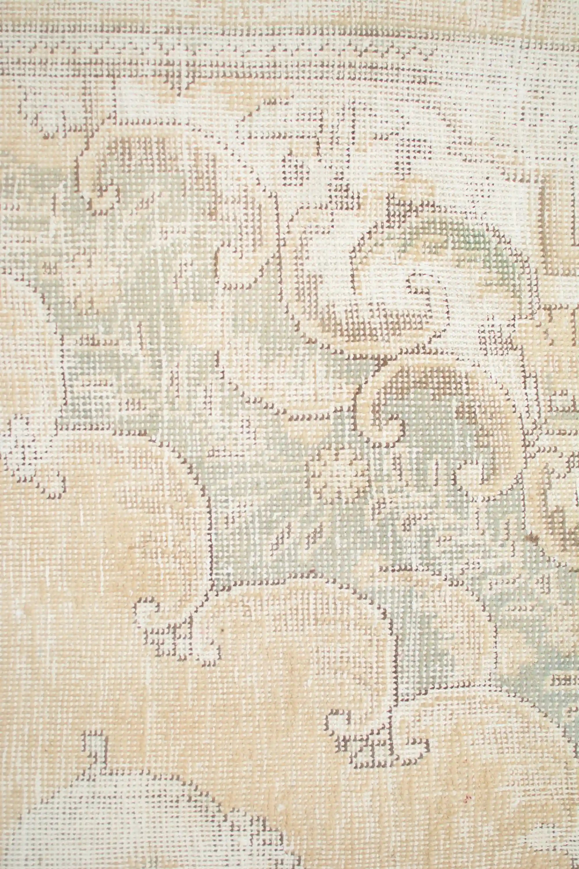 Alfombra anudada a mano por artesanos, reciclada y modernizada a través de tratamientos de teñido y carving, logrando un diseño clásico con colores y texturas modernas.