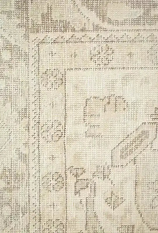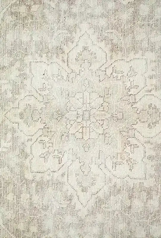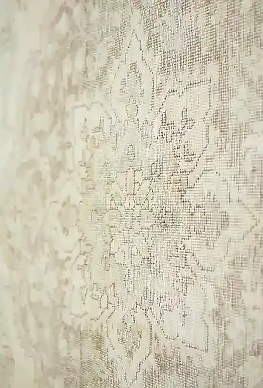 Alfombra anudada a mano por artesanos, reciclada y modernizada a través de tratamientos de teñido y carving, logrando un diseño clásico con colores y texturas modernas.