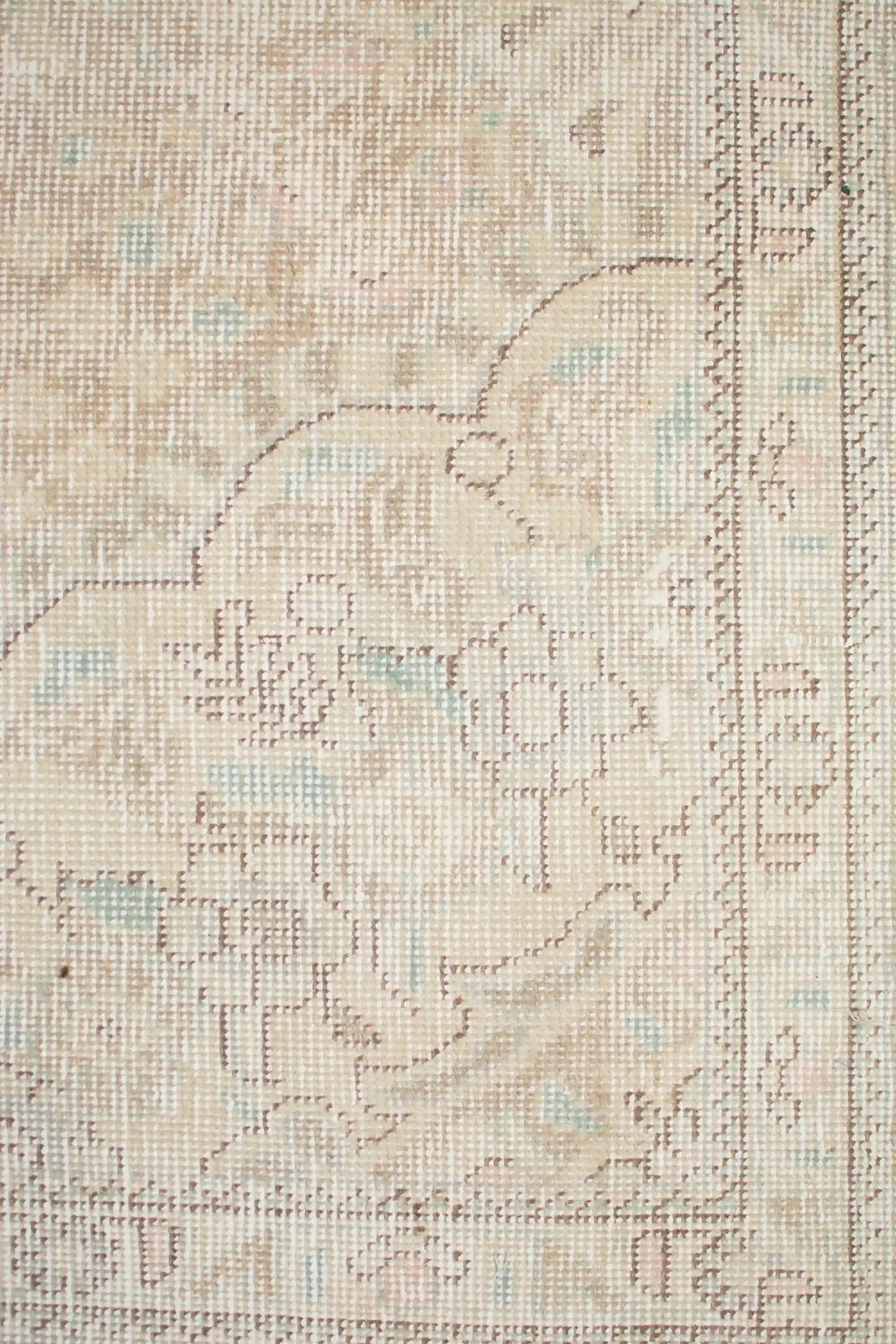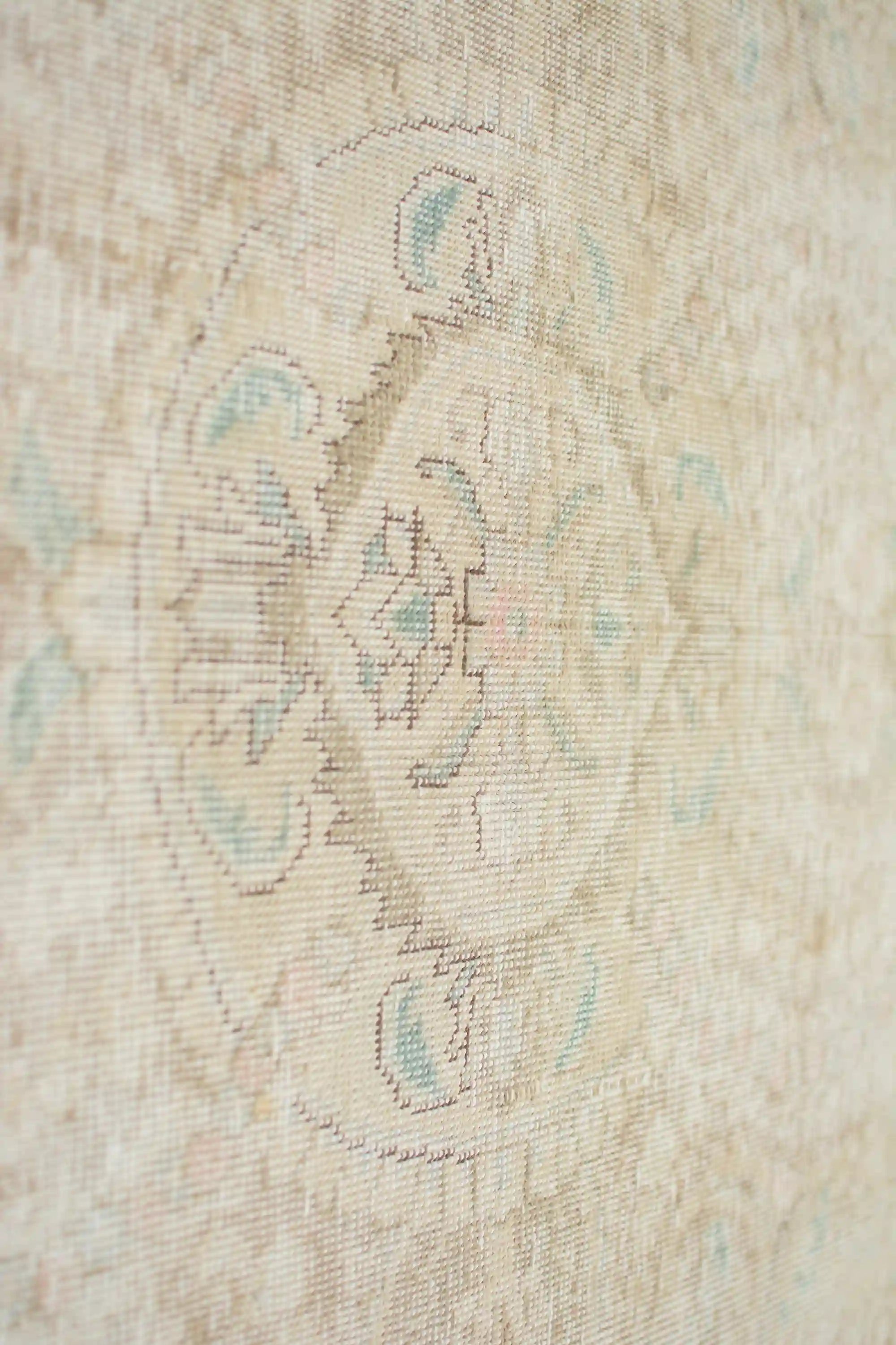 Alfombra anudada a mano por artesanos, reciclada y modernizada a través de tratamientos de teñido y carving, logrando un diseño clásico con colores y texturas modernas.