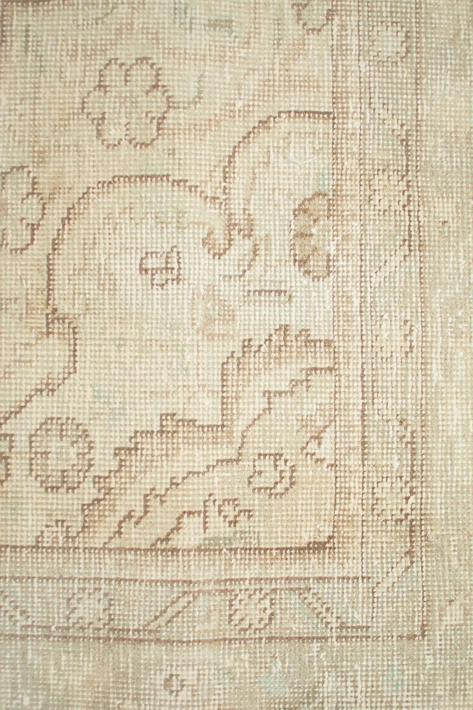 Alfombra anudada a mano por artesanos, reciclada y modernizada a través de tratamientos de teñido y carving, logrando un diseño clásico con colores y texturas modernas.