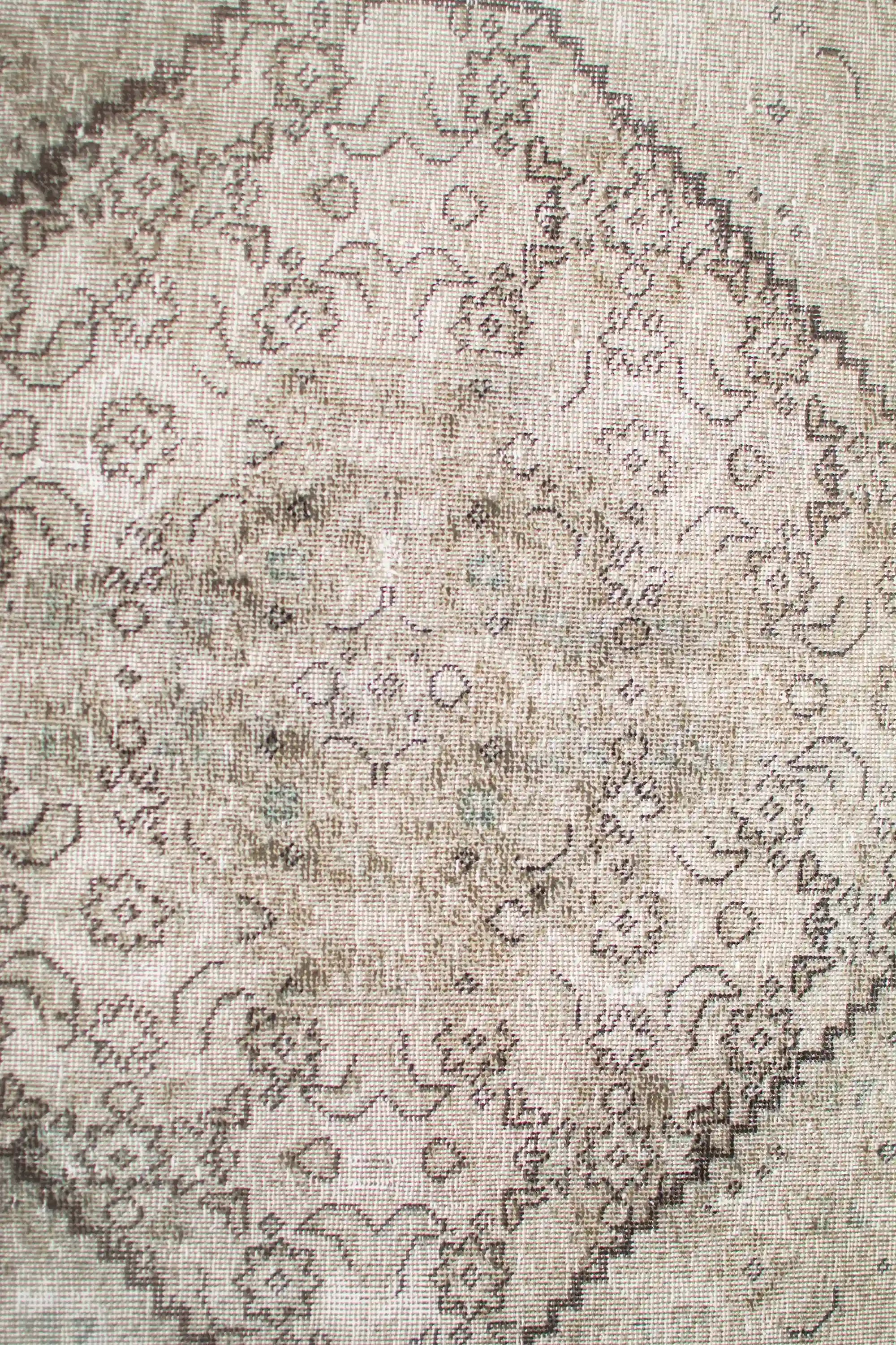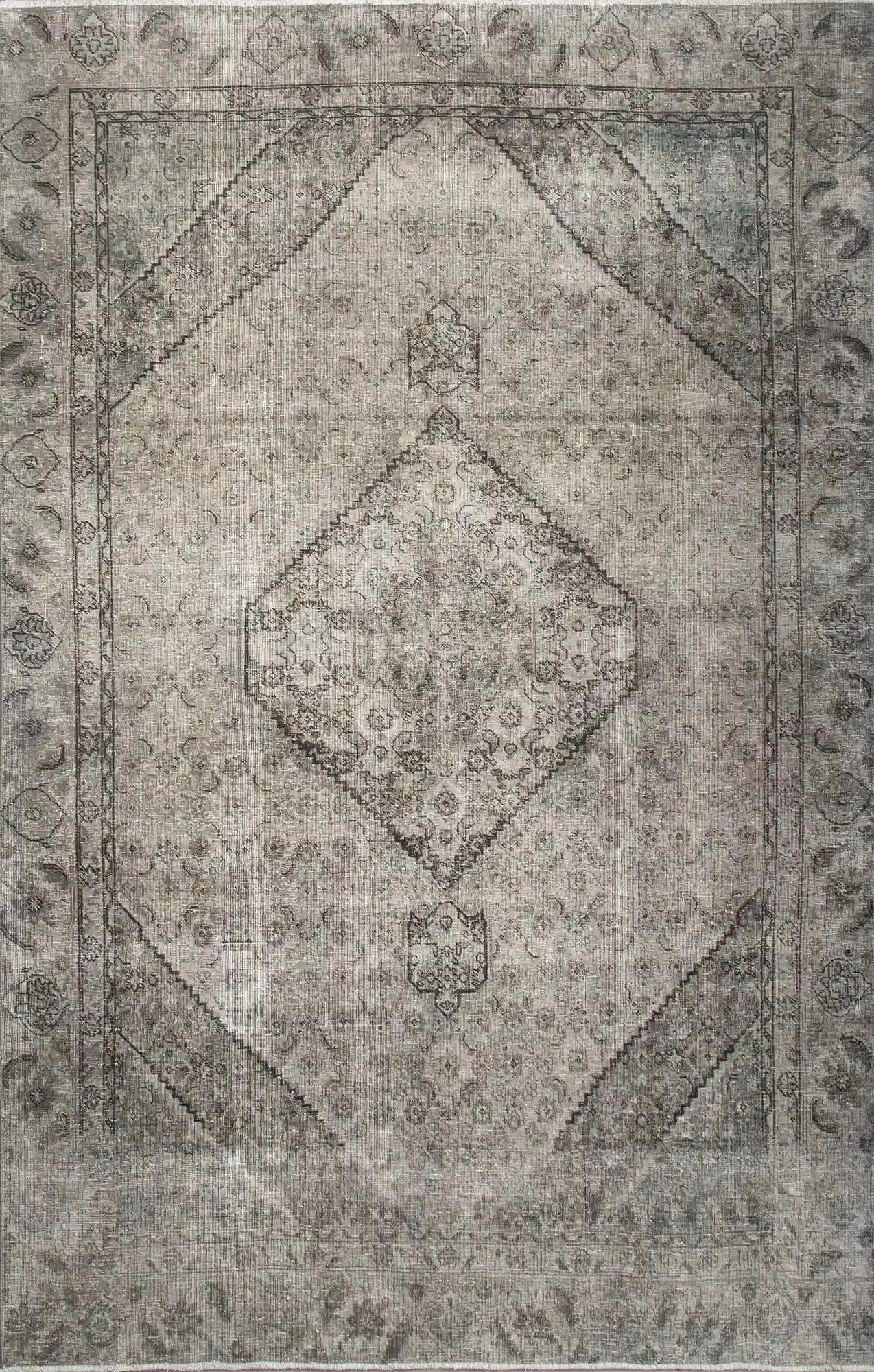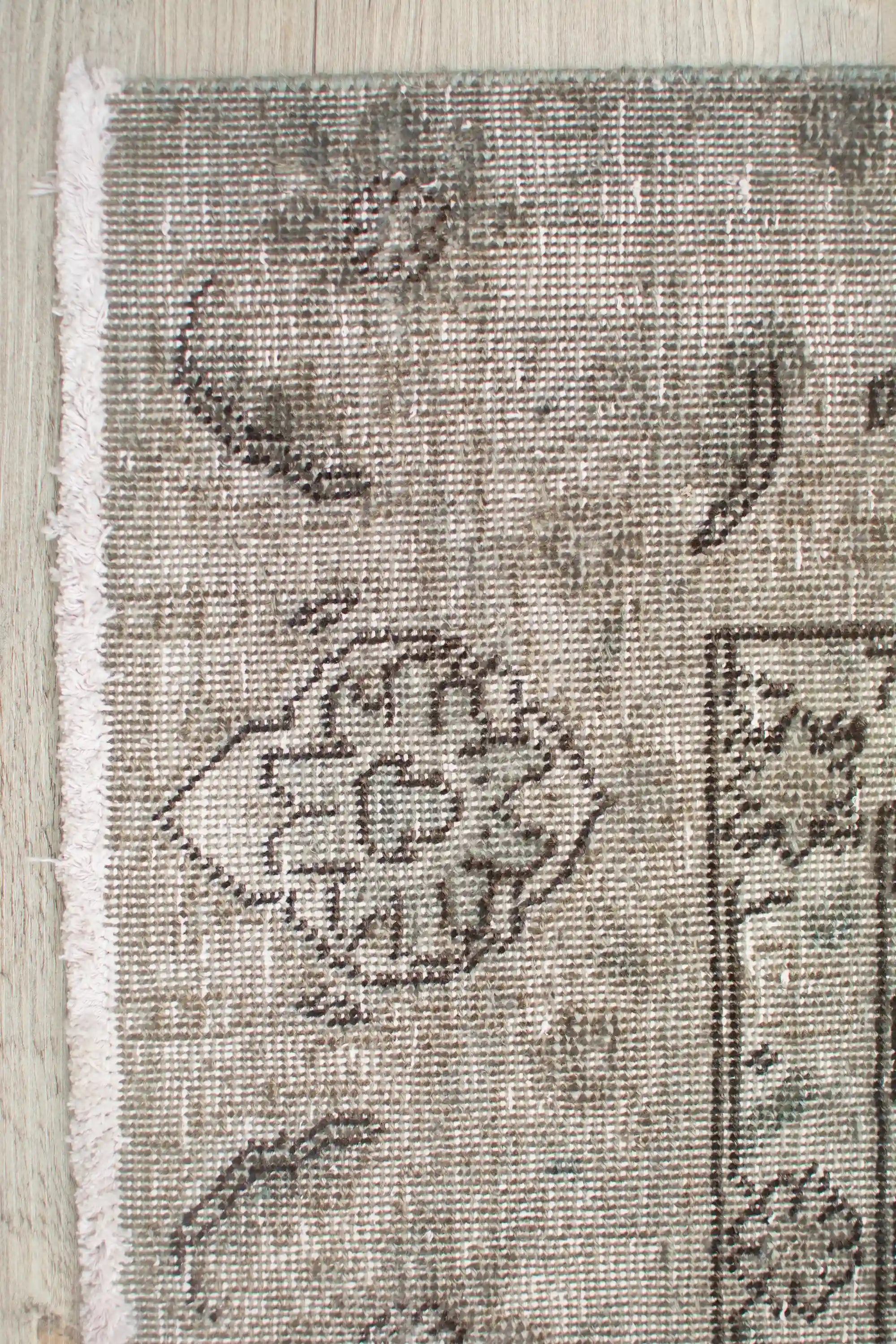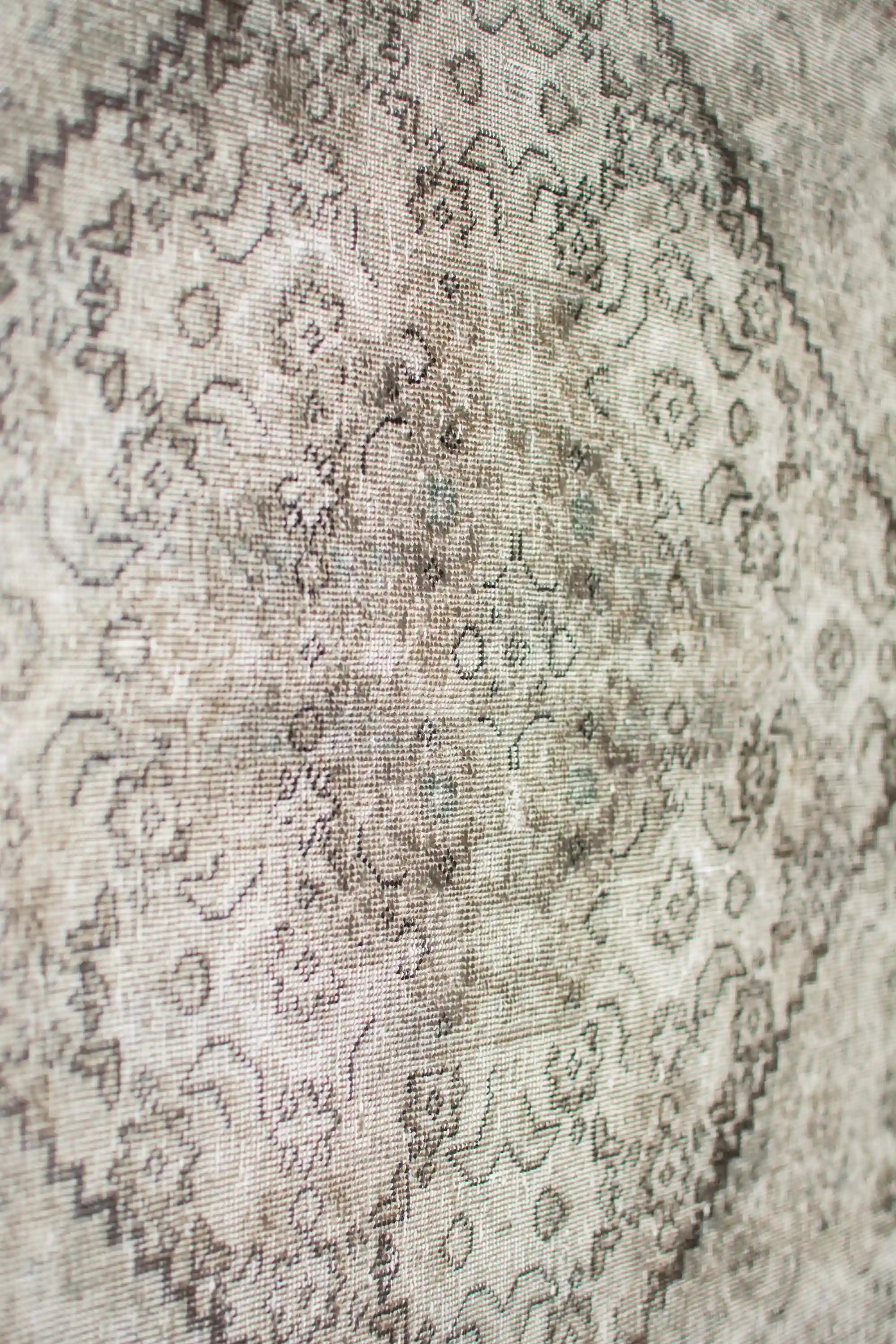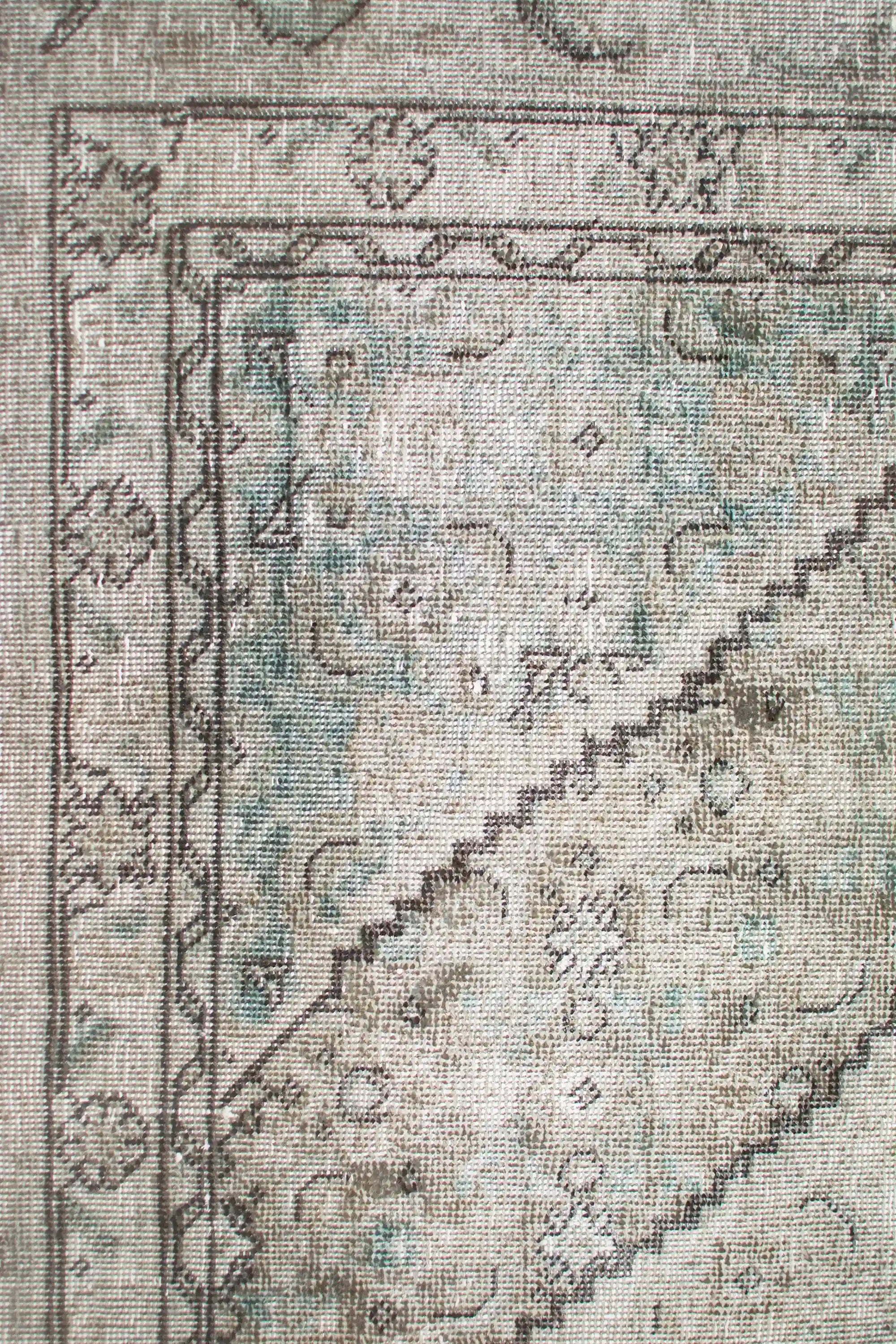 Alfombra anudada a mano por artesanos, reciclada y modernizada a través de tratamientos de teñido y carving, logrando un diseño clásico con colores y texturas modernas.