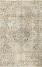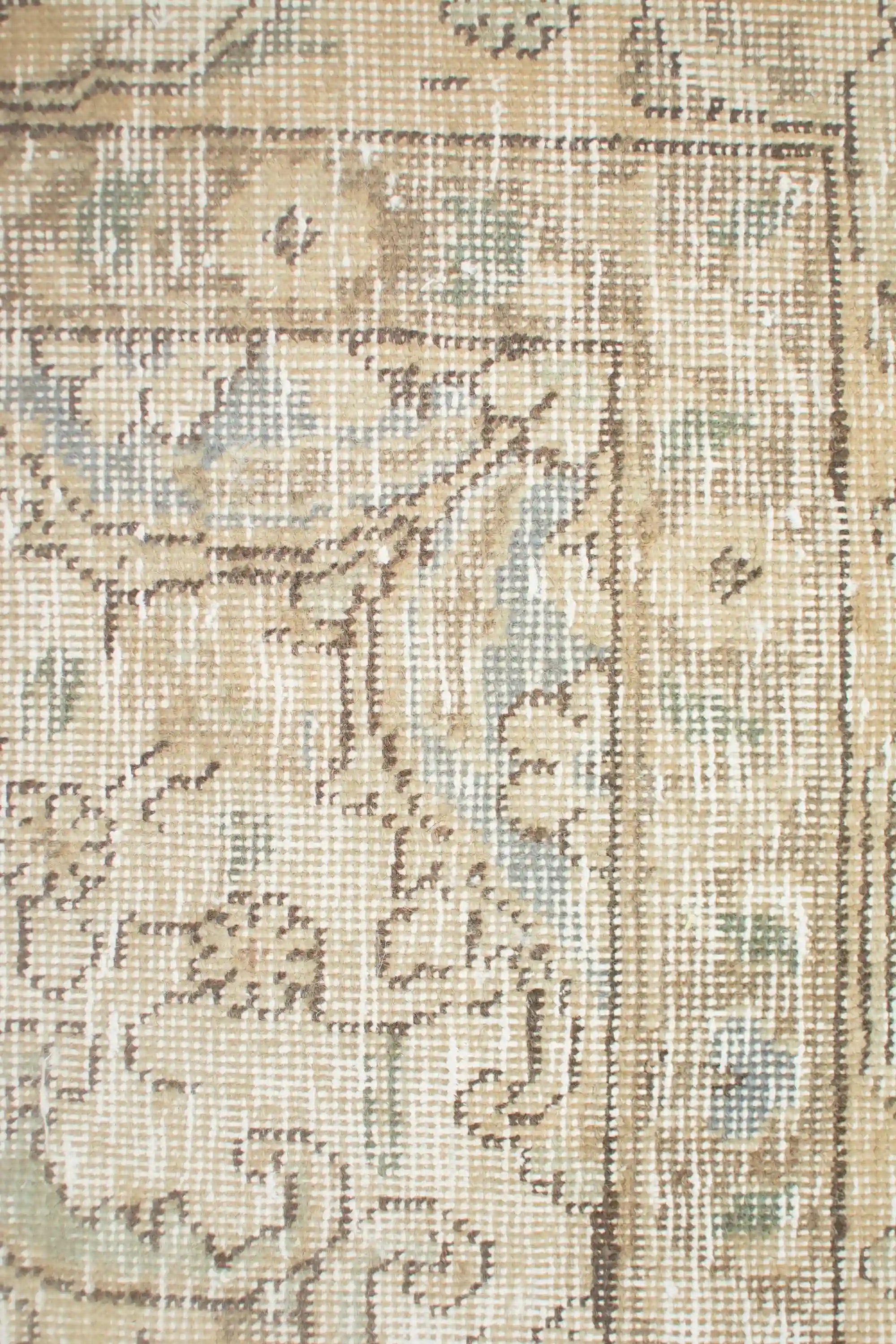 Alfombra anudada a mano por artesanos, reciclada y modernizada a través de tratamientos de teñido y carving, logrando un diseño clásico con colores y texturas modernas.