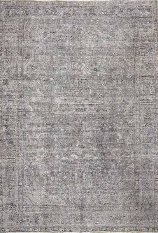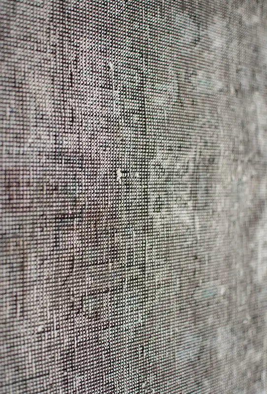 Alfombra anudada a mano por artesanos, reciclada y modernizada a través de tratamientos de teñido y carving, logrando un diseño clásico con colores y texturas modernas.