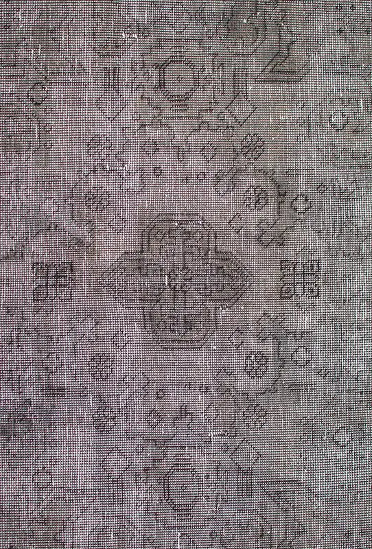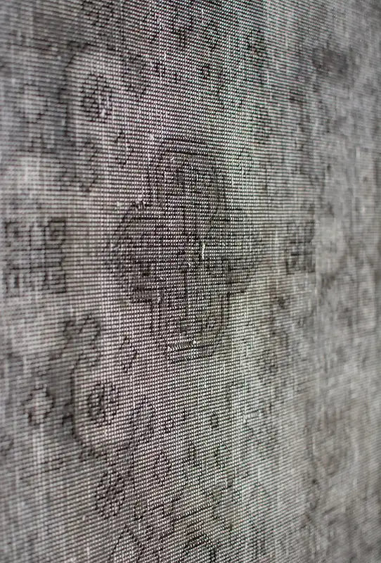 Alfombra anudada a mano por artesanos, reciclada y modernizada a través de tratamientos de teñido y carving, logrando un diseño clásico con colores y texturas modernas.