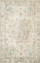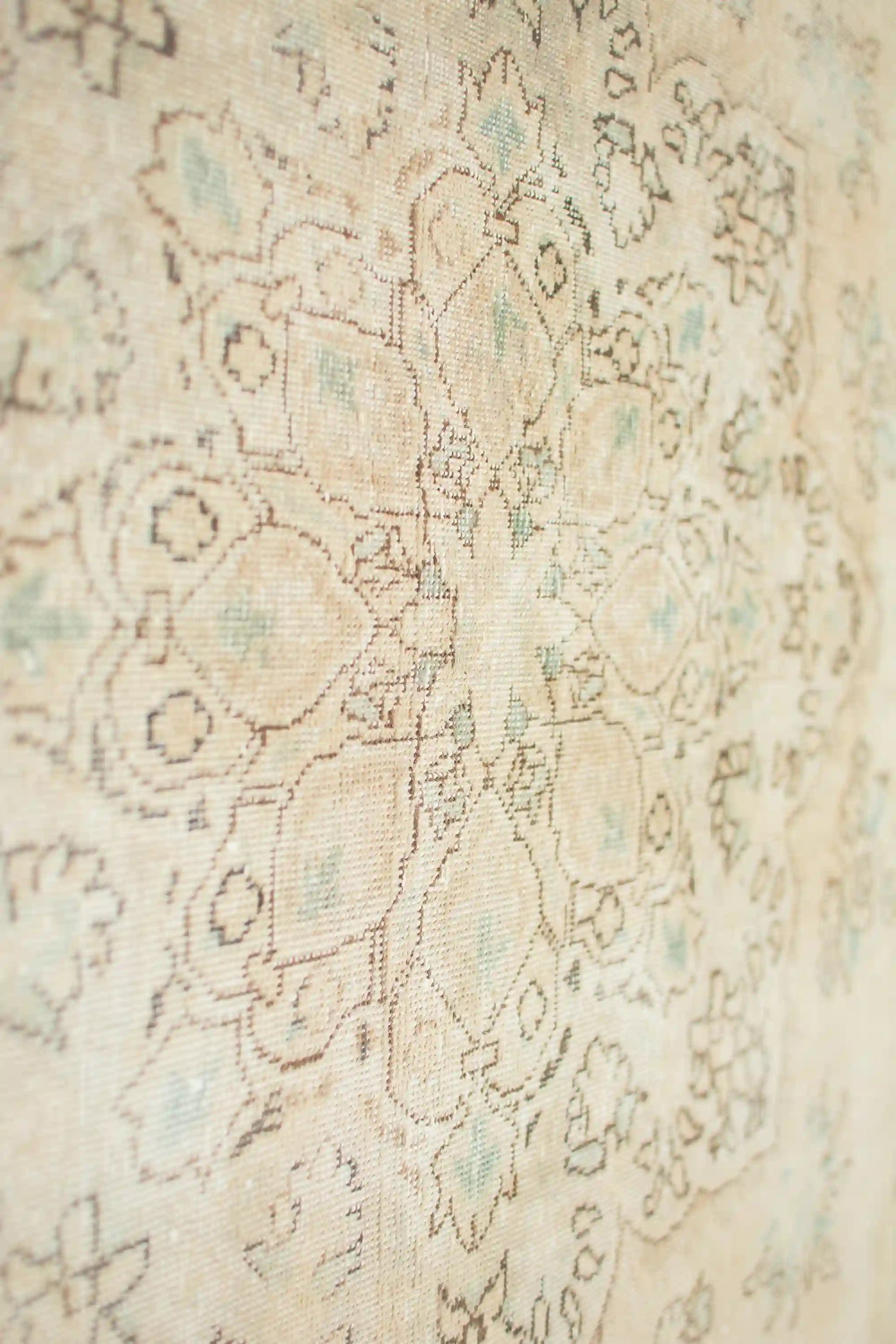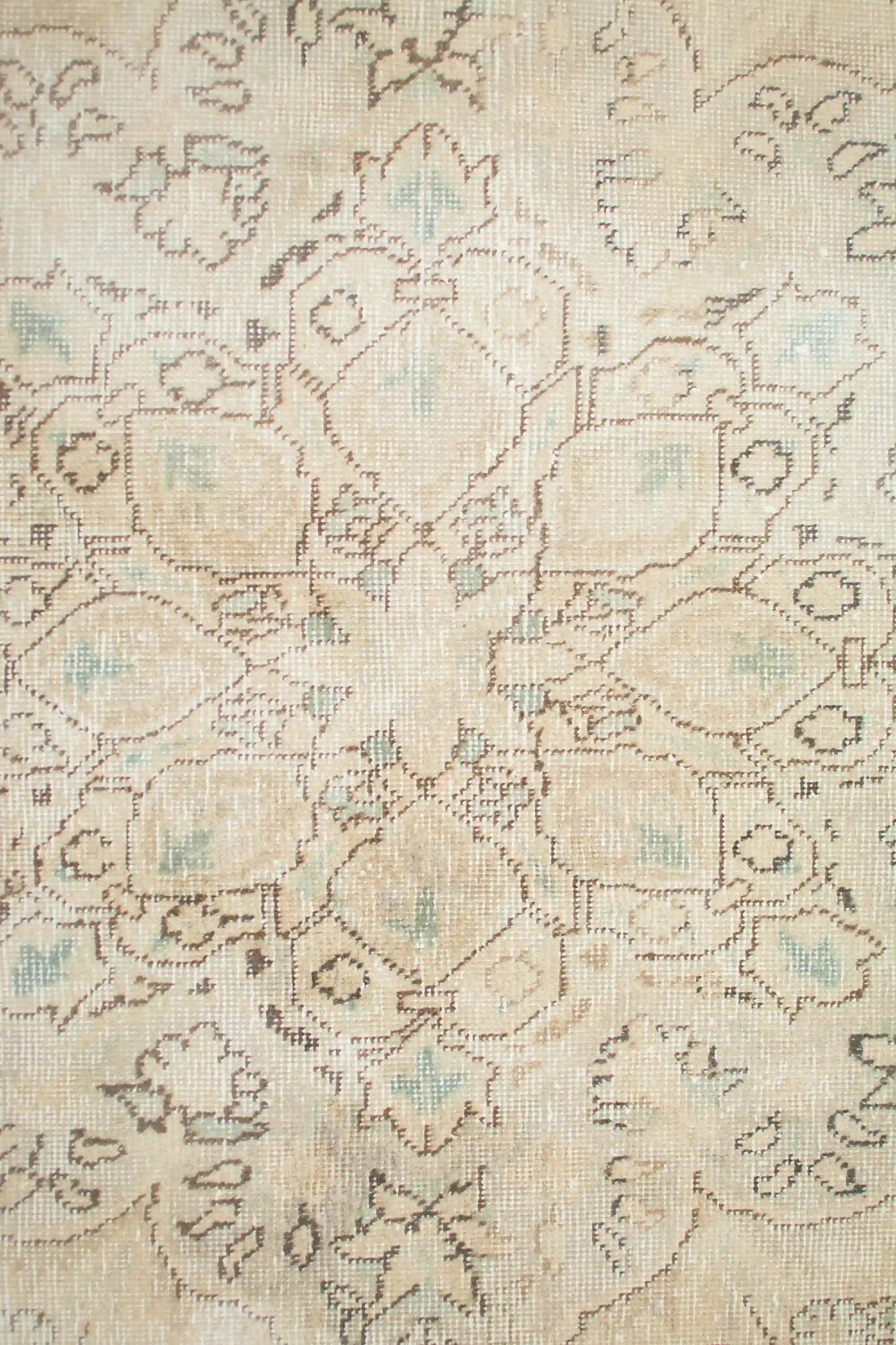 Alfombra anudada a mano por artesanos, reciclada y modernizada a través de tratamientos de teñido y carving, logrando un diseño clásico con colores y texturas modernas.