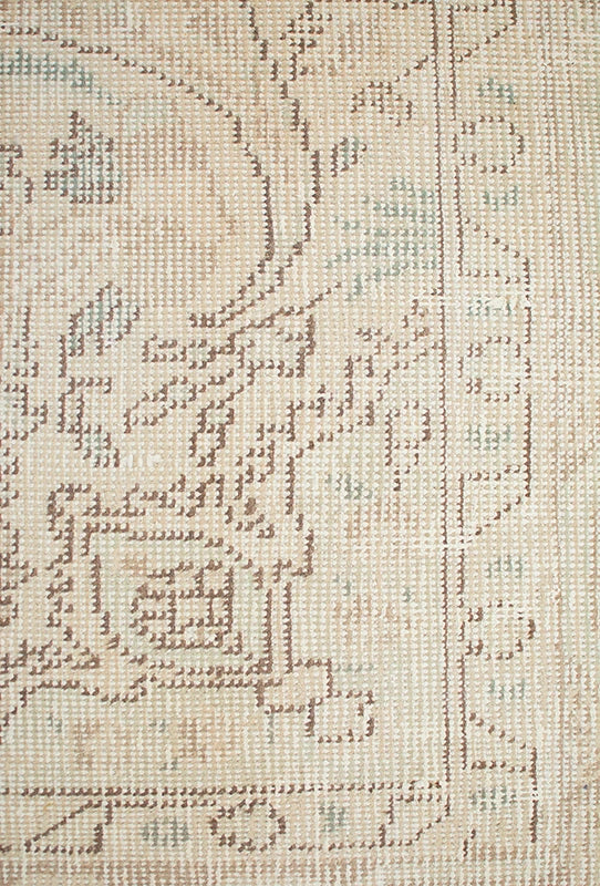 Alfombra anudada a mano por artesanos, reciclada y modernizada a través de tratamientos de teñido y carving, logrando un diseño clásico con colores y texturas modernas.