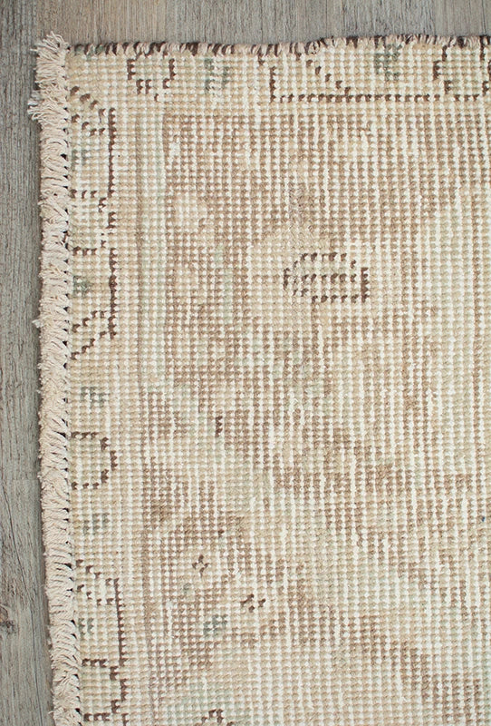 Alfombra anudada a mano por artesanos, reciclada y modernizada a través de tratamientos de teñido y carving, logrando un diseño clásico con colores y texturas modernas.
