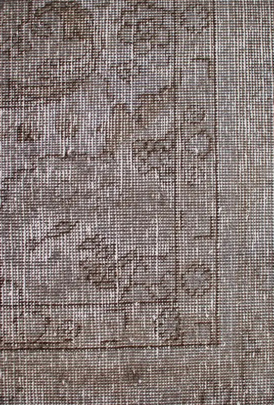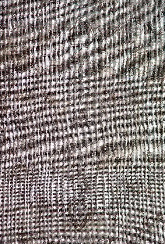 Alfombra anudada a mano por artesanos, reciclada y modernizada a través de tratamientos de teñido y carving, logrando un diseño clásico con colores y texturas modernas.