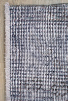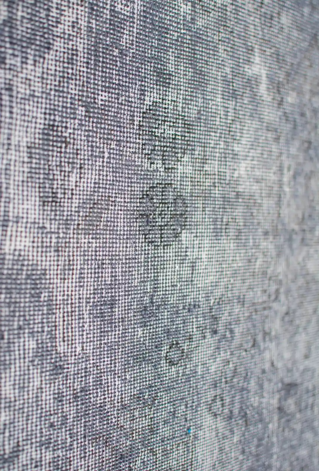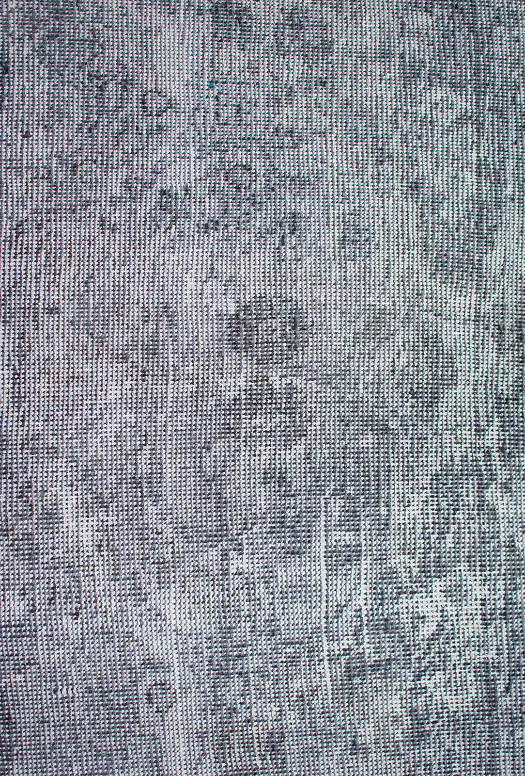 Alfombra anudada a mano por artesanos, reciclada y modernizada a través de tratamientos de teñido y carving, logrando un diseño clásico con colores y texturas modernas.