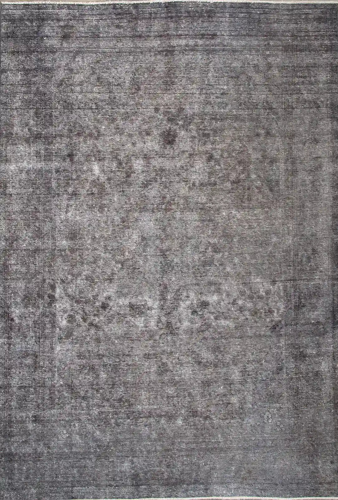 Alfombra anudada a mano por artesanos, reciclada y modernizada a través de tratamientos de teñido y carving, logrando un diseño clásico con colores y texturas modernas.