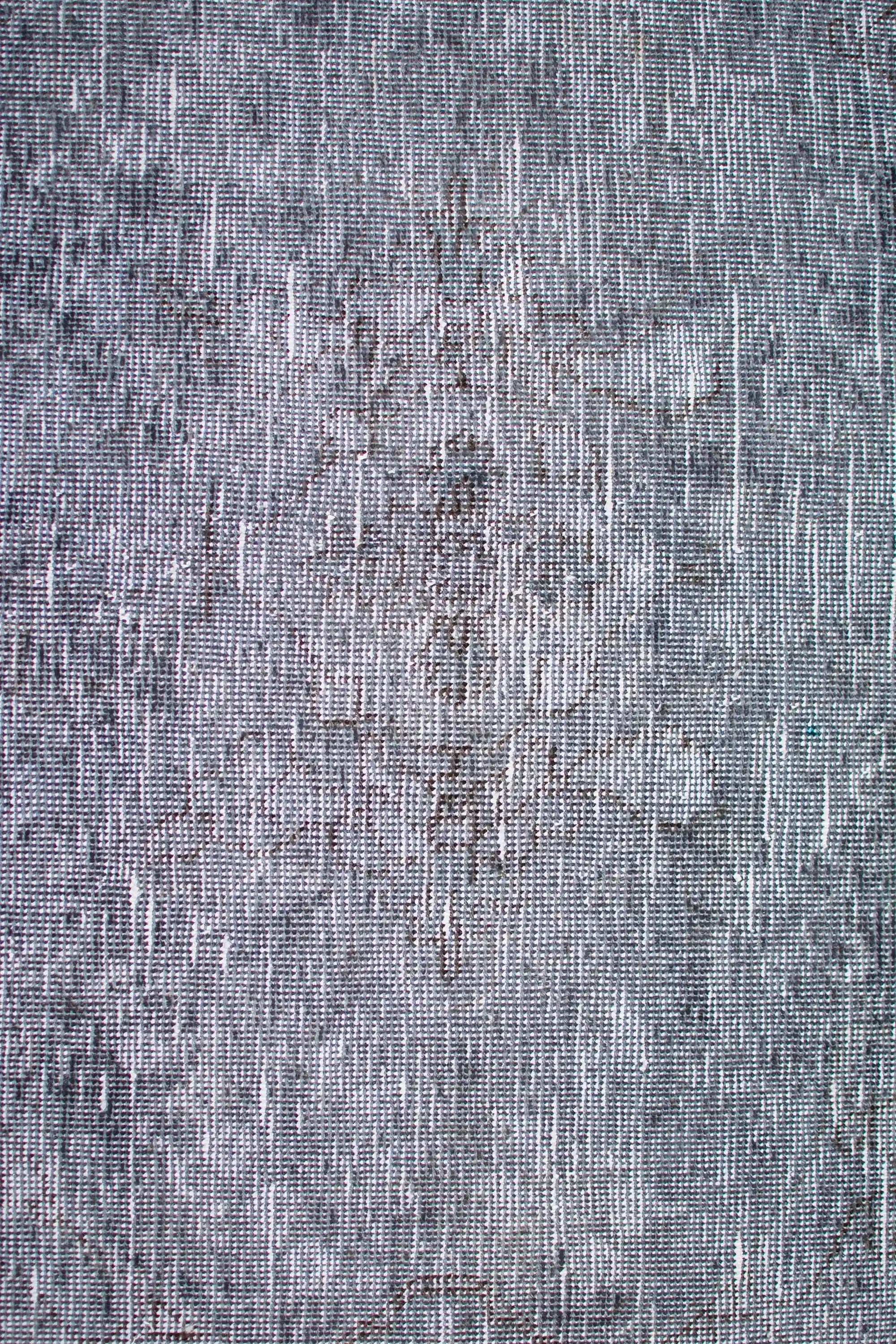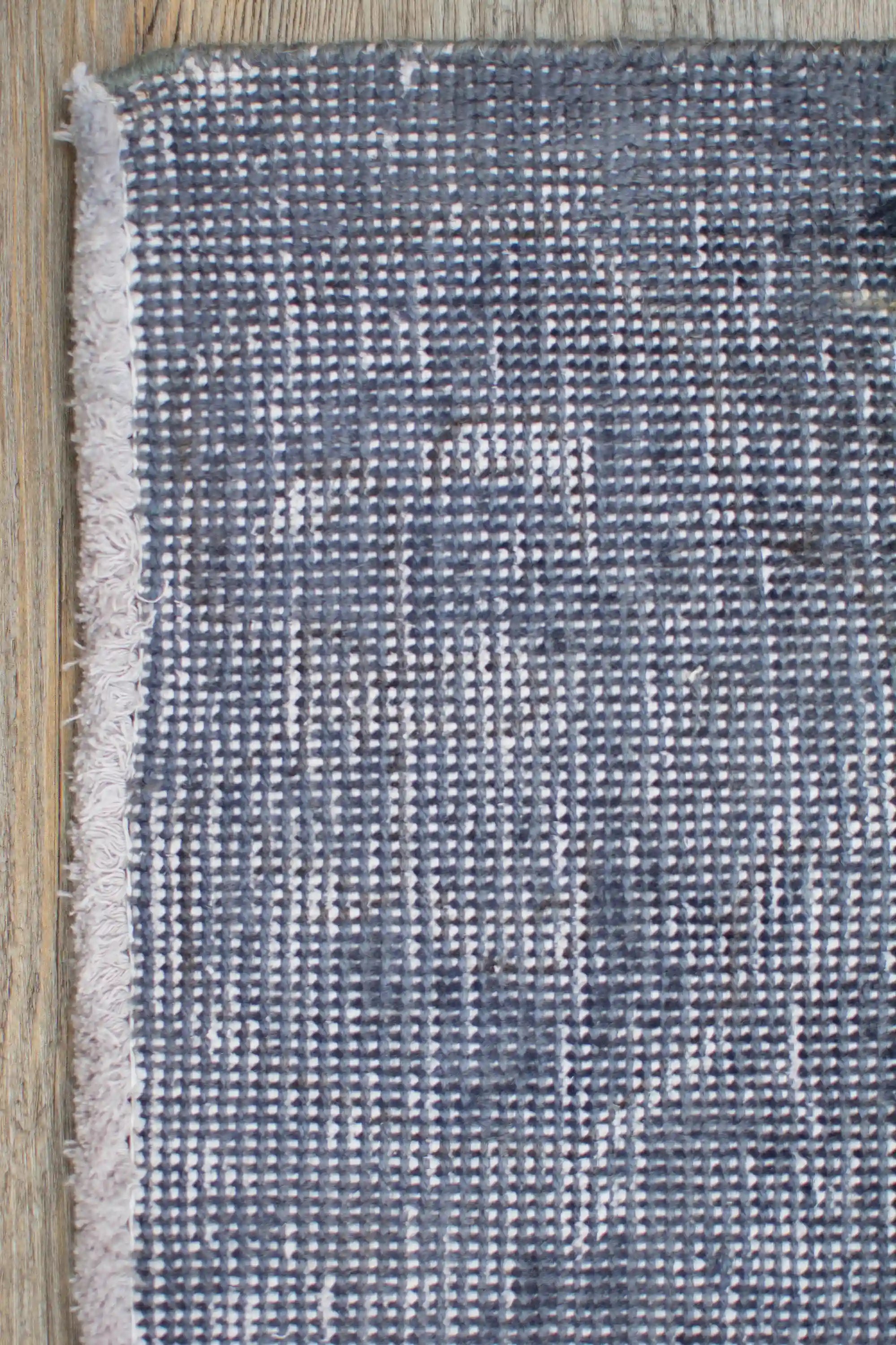 Alfombra anudada a mano por artesanos, reciclada y modernizada a través de tratamientos de teñido y carving, logrando un diseño clásico con colores y texturas modernas.