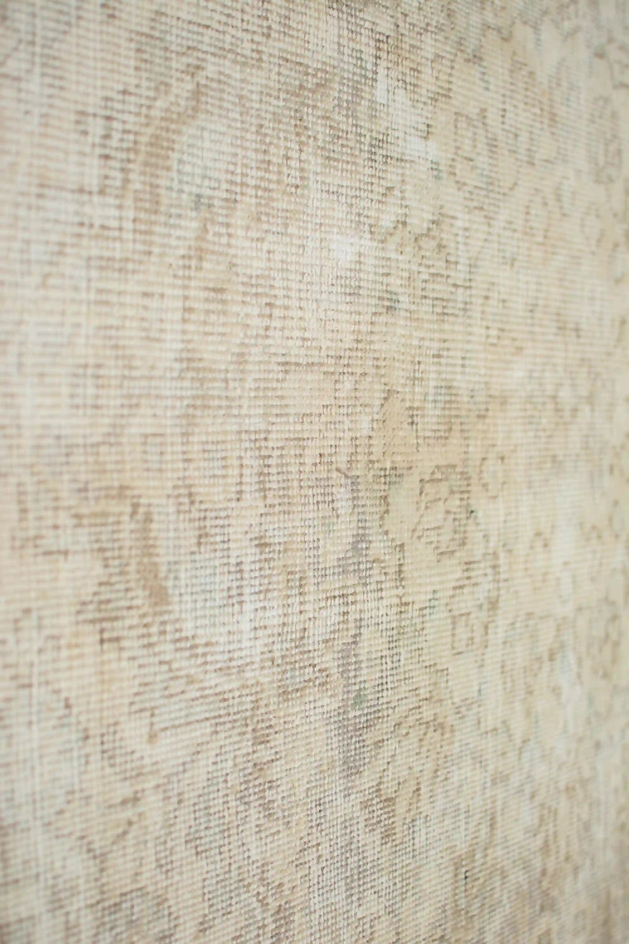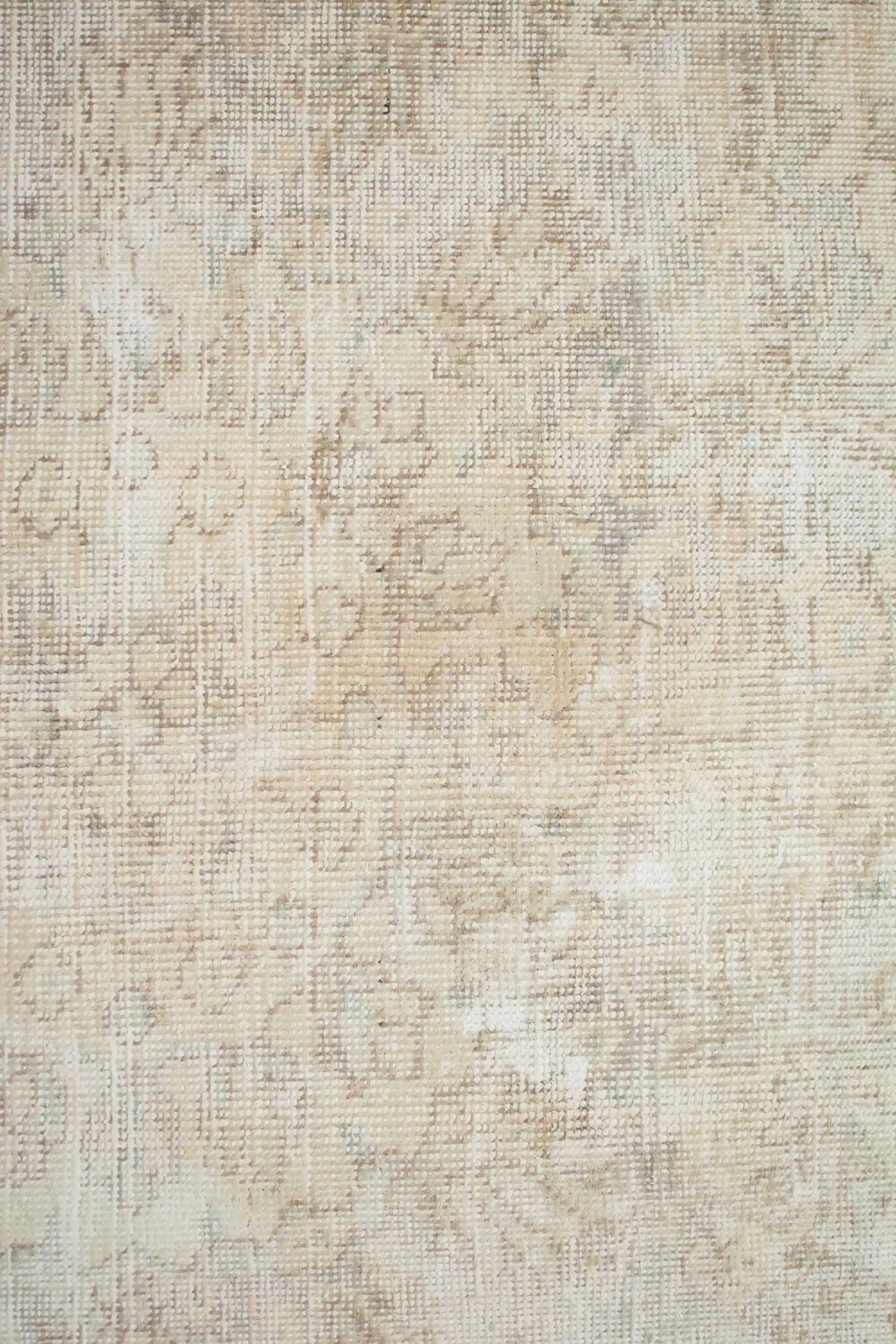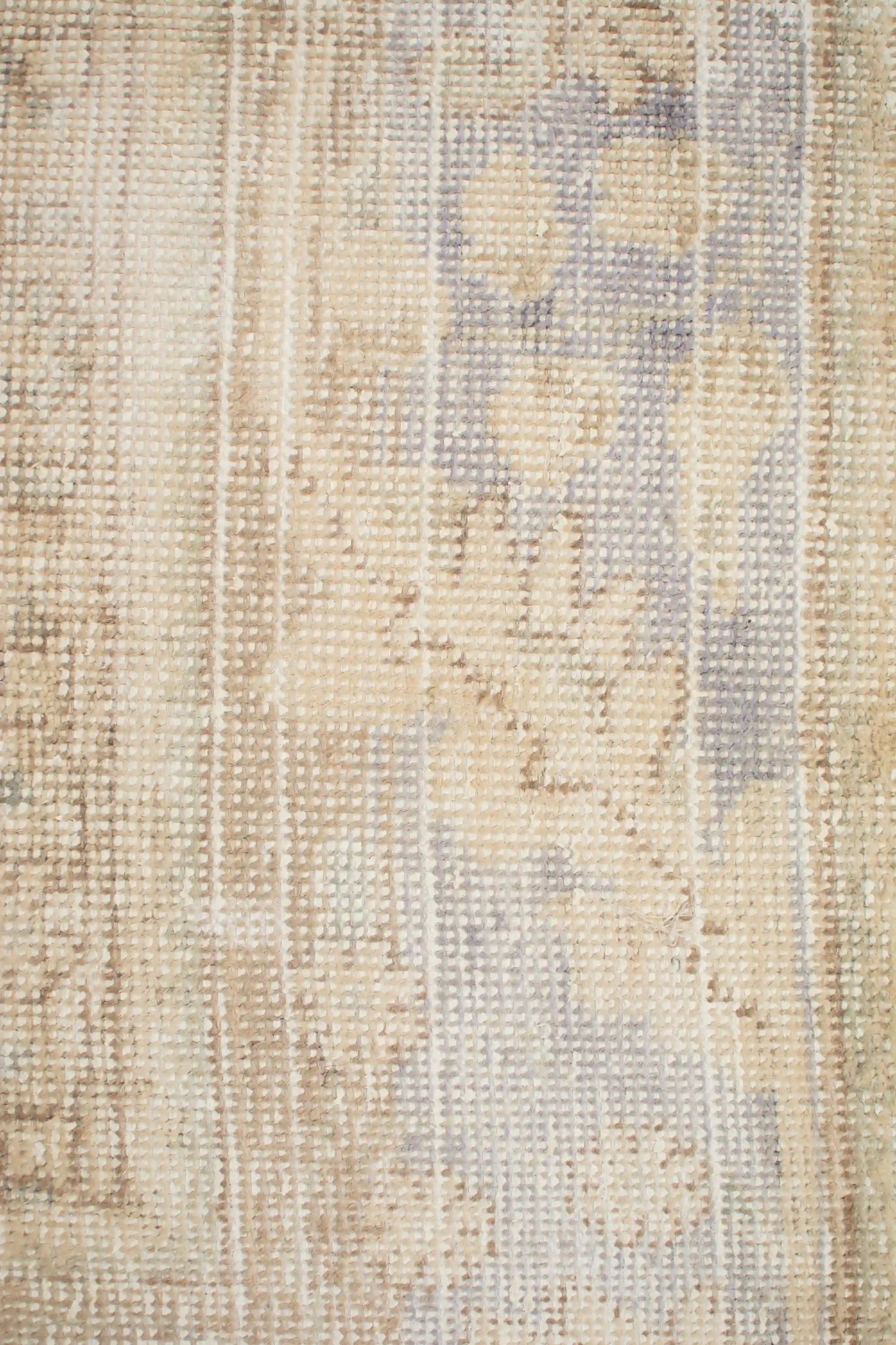 Alfombra anudada a mano por artesanos, reciclada y modernizada a través de tratamientos de teñido y carving, logrando un diseño clásico con colores y texturas modernas.