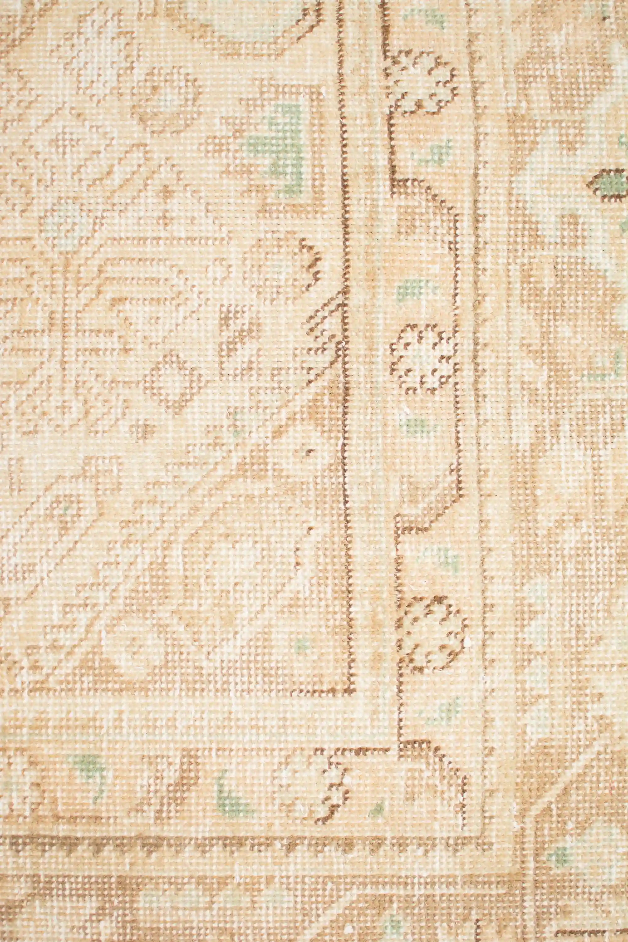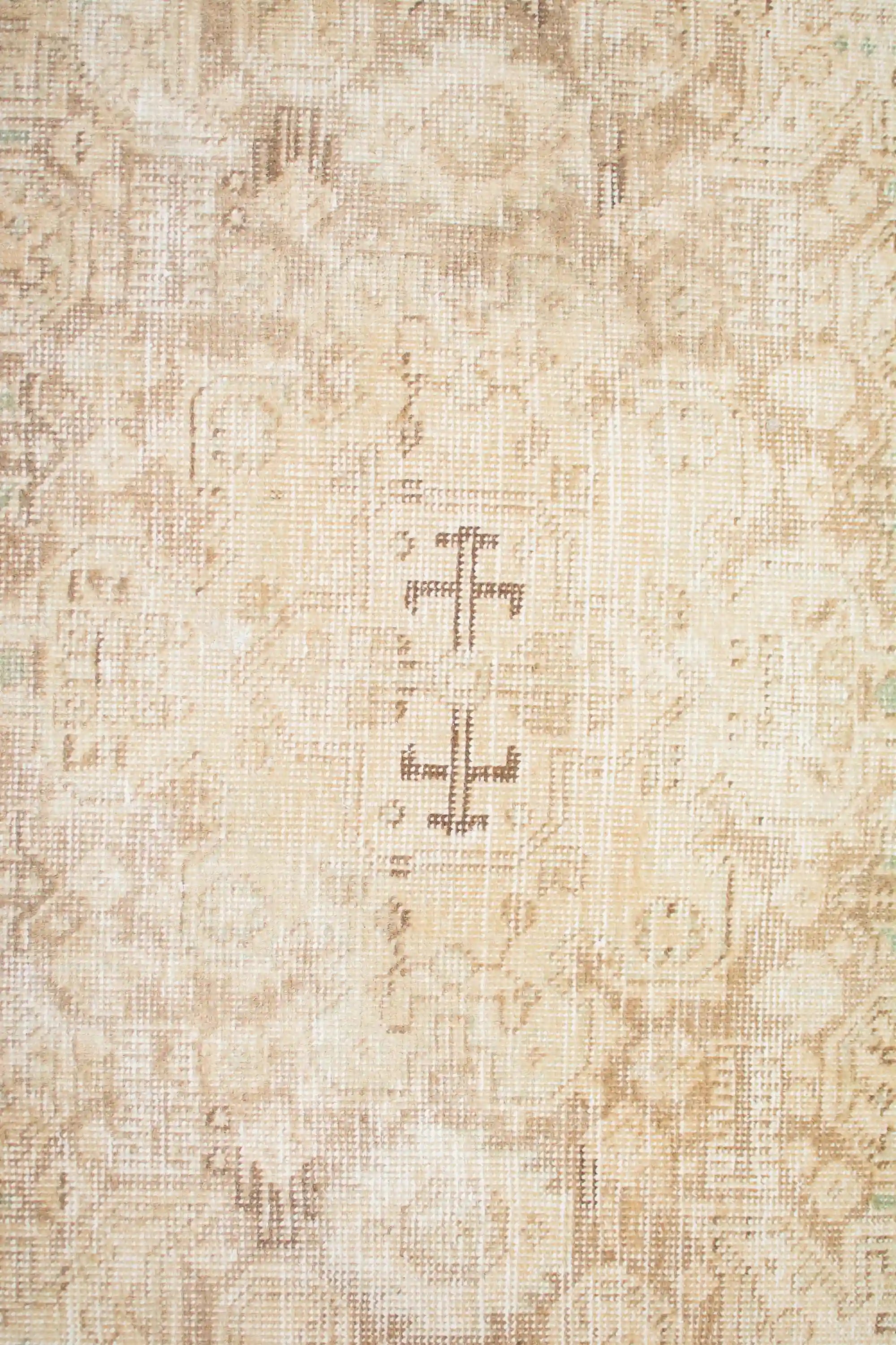Alfombra anudada a mano por artesanos, reciclada y modernizada a través de tratamientos de teñido y carving, logrando un diseño clásico con colores y texturas modernas.