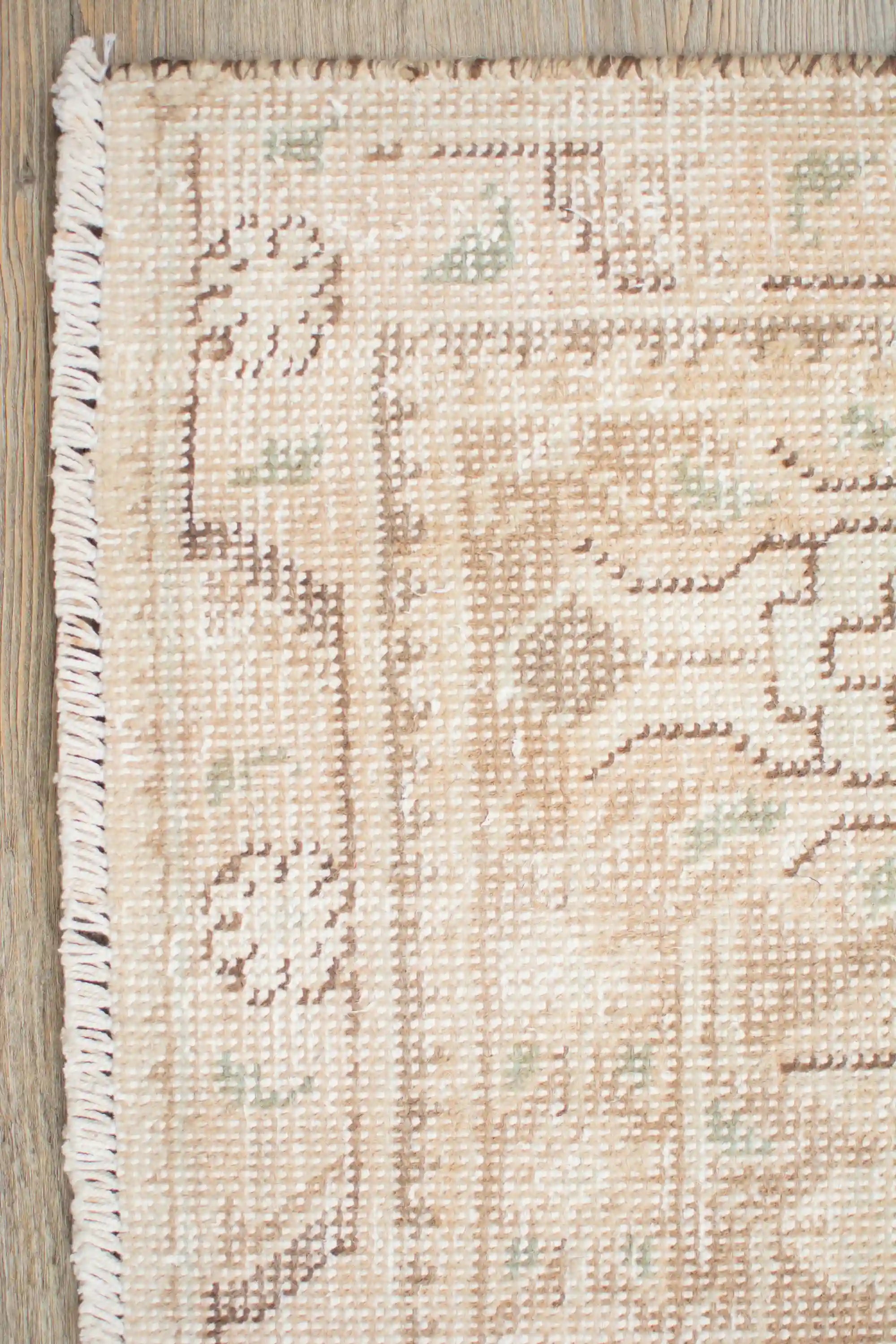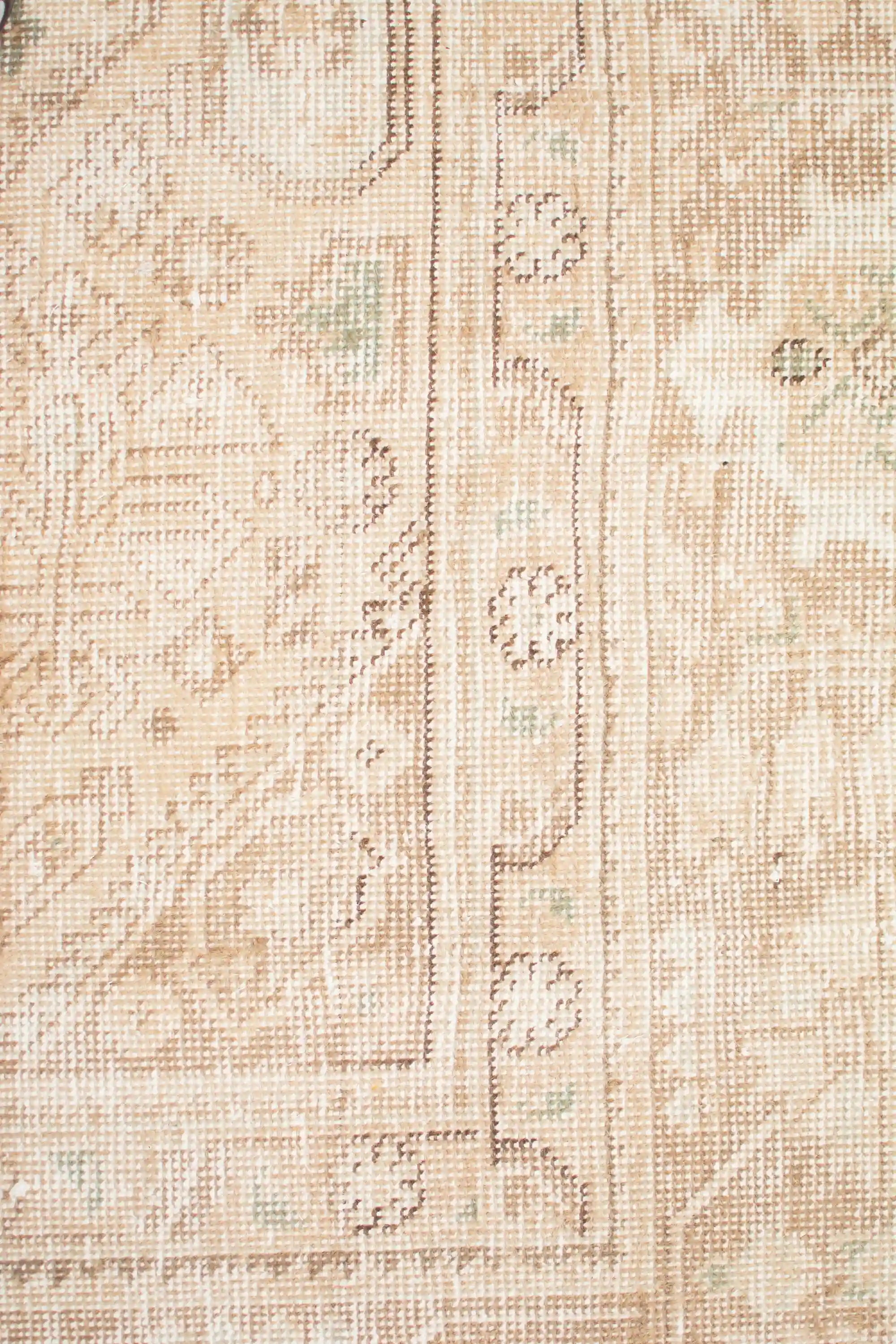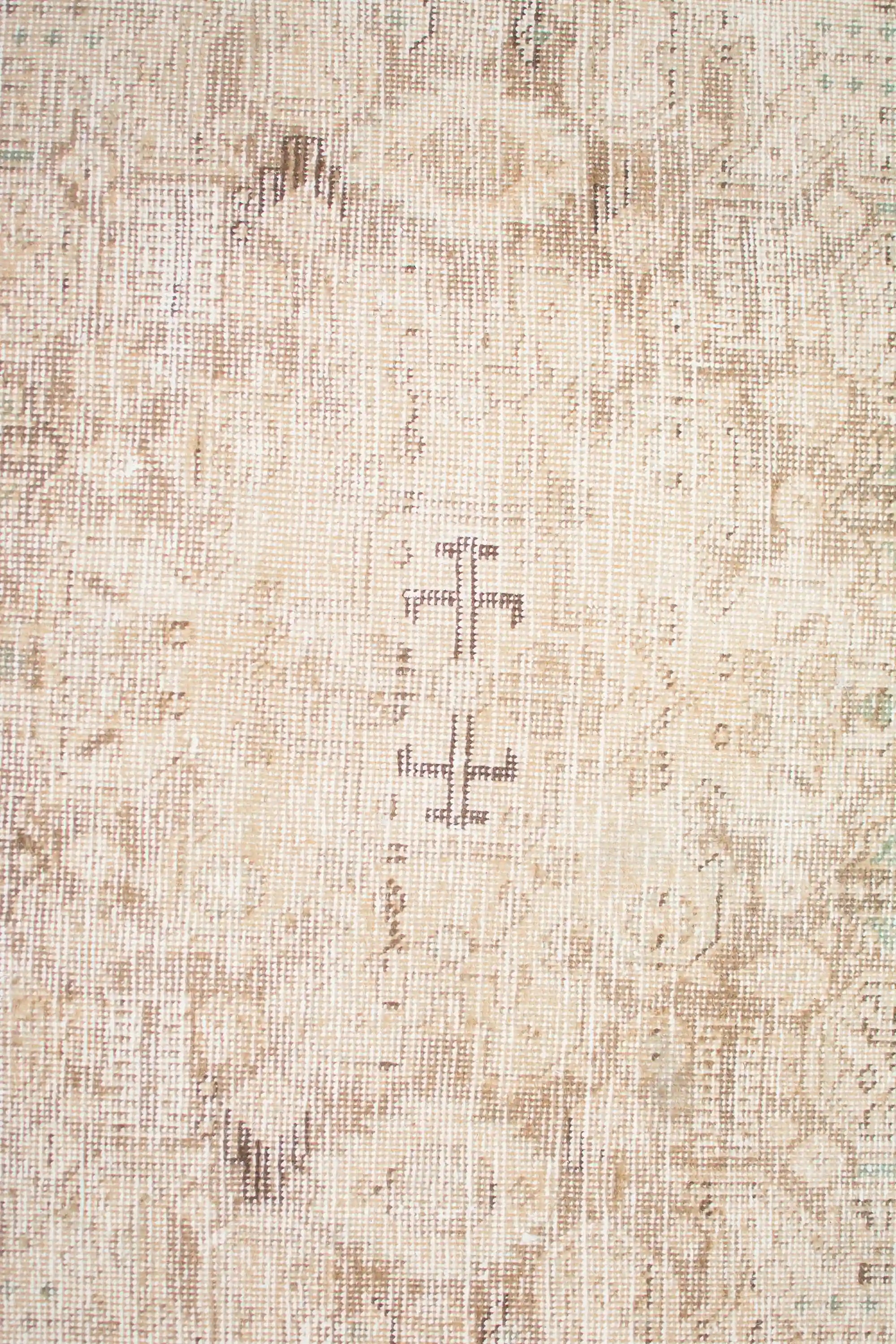 Alfombra anudada a mano por artesanos, reciclada y modernizada a través de tratamientos de teñido y carving, logrando un diseño clásico con colores y texturas modernas.