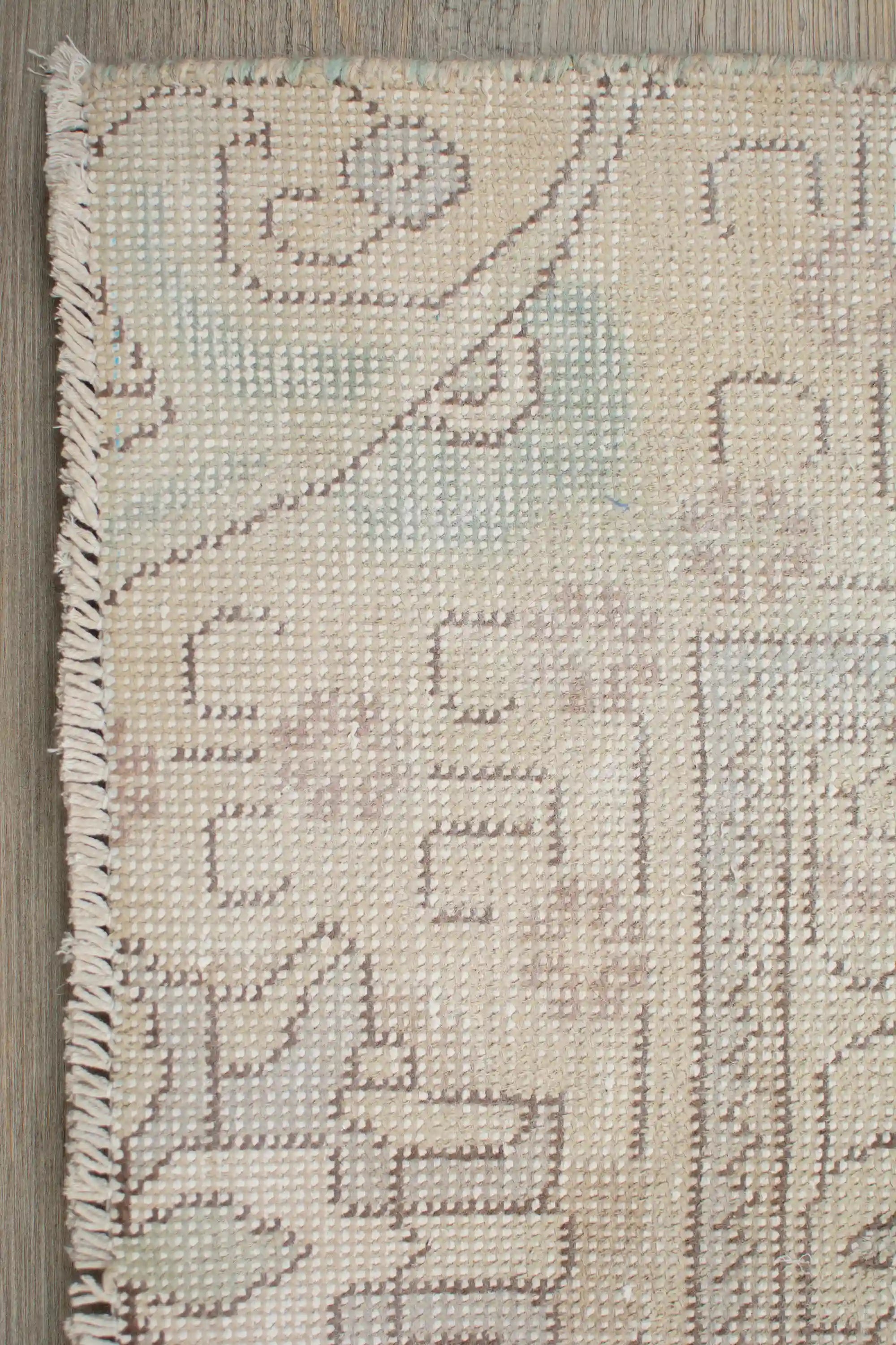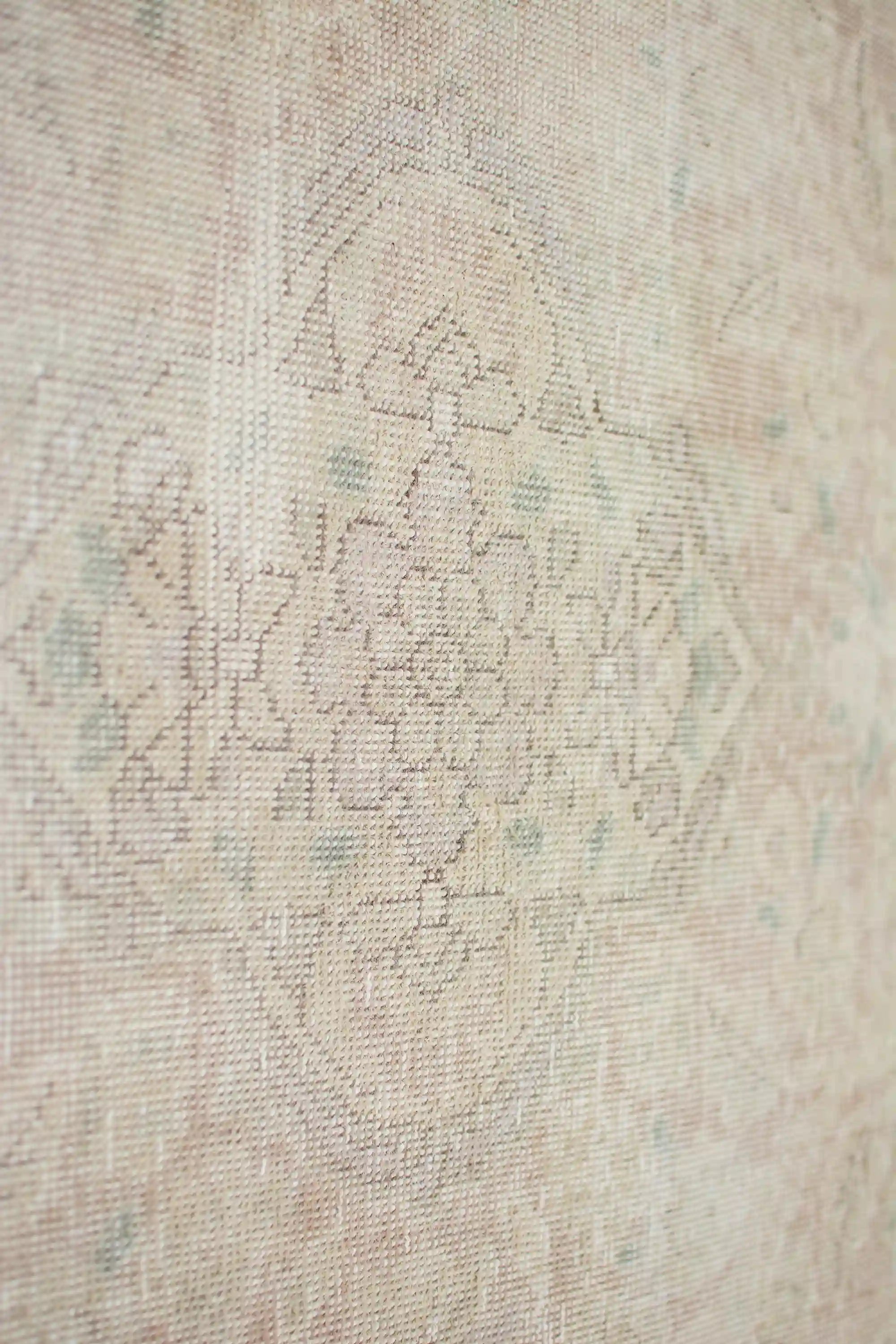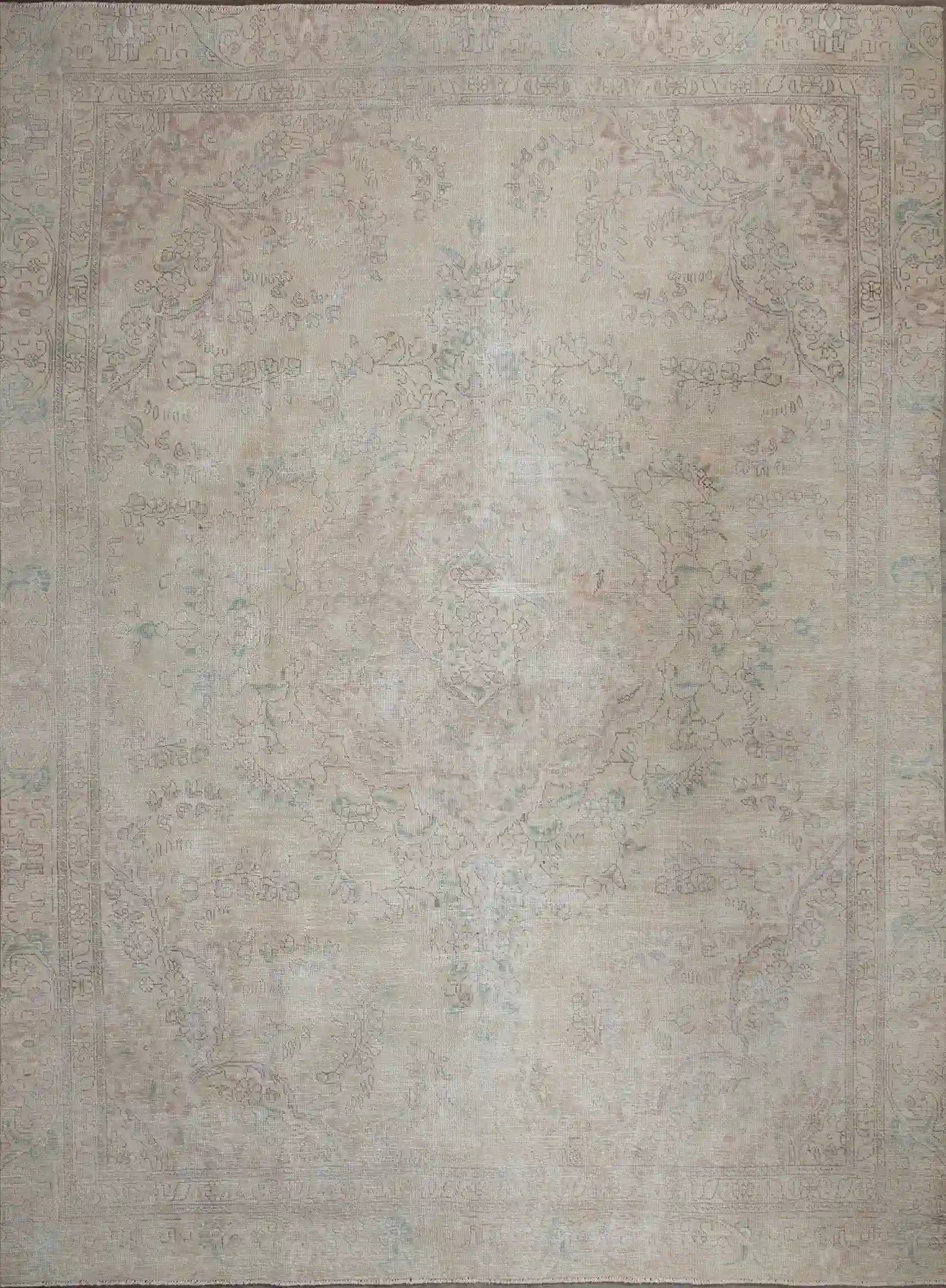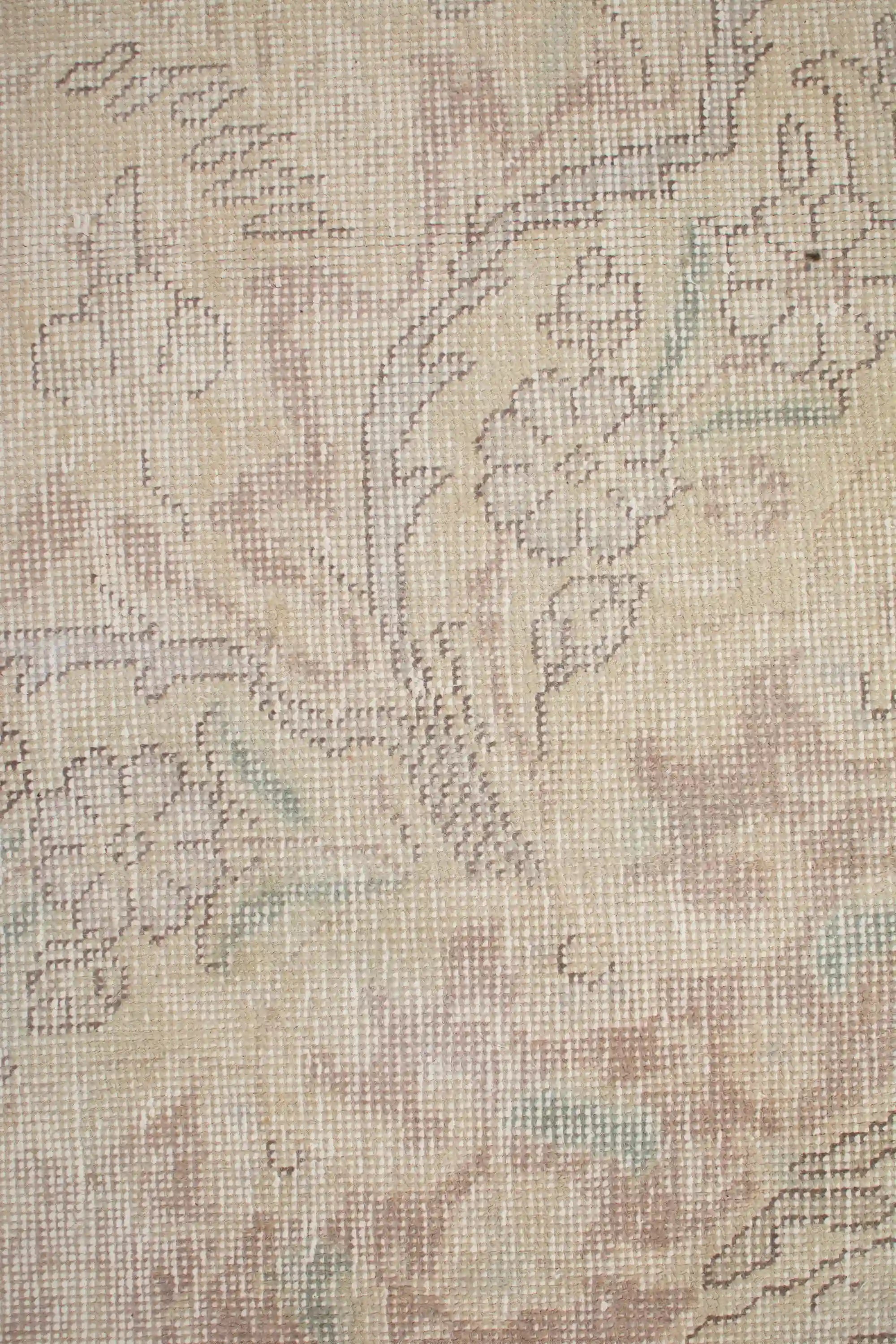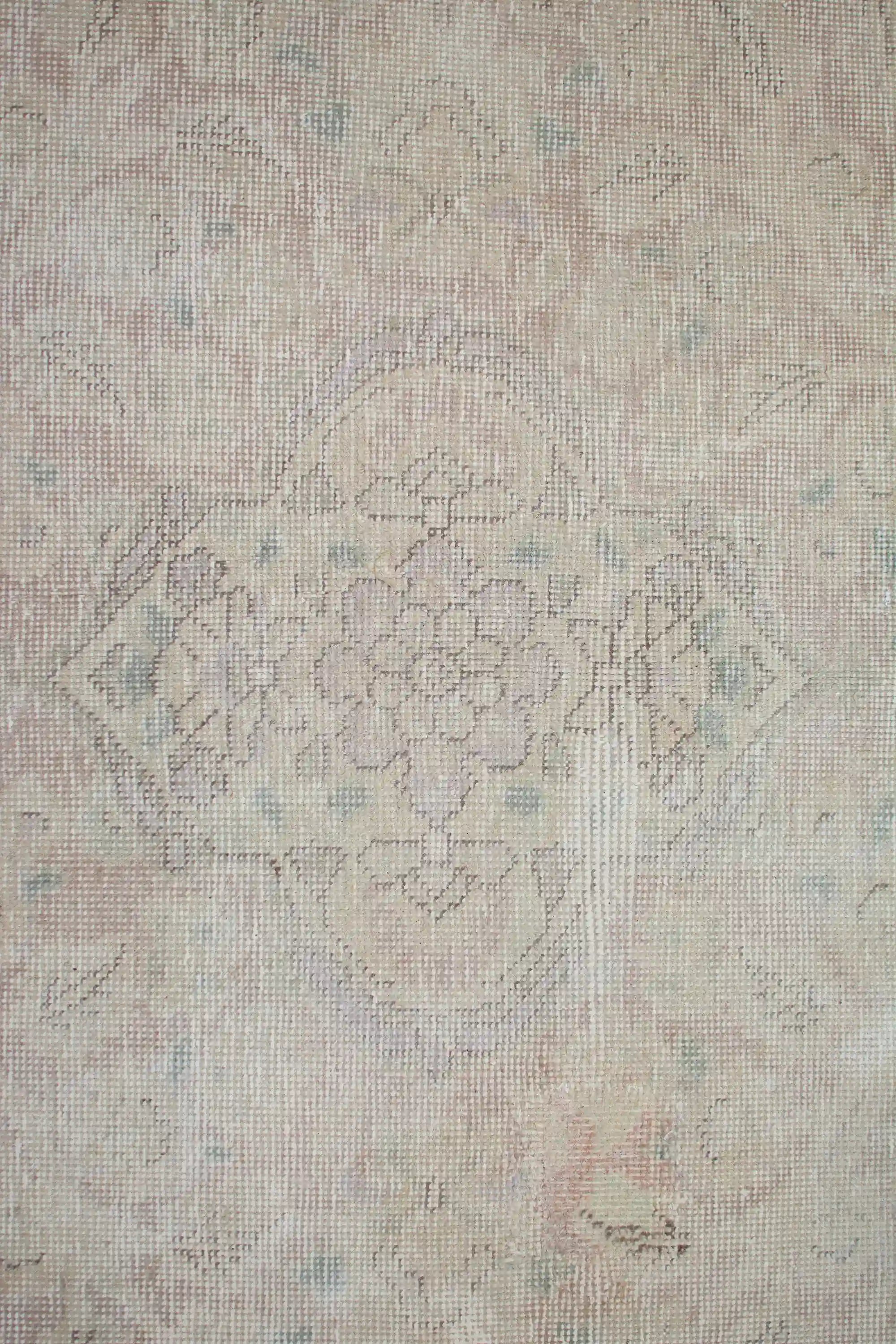 Alfombra anudada a mano por artesanos, reciclada y modernizada a través de tratamientos de teñido y carving, logrando un diseño clásico con colores y texturas modernas.