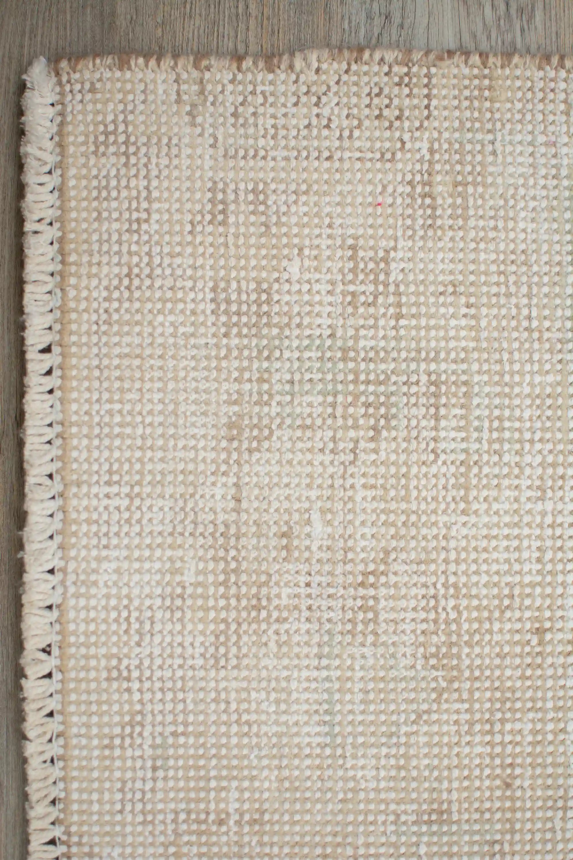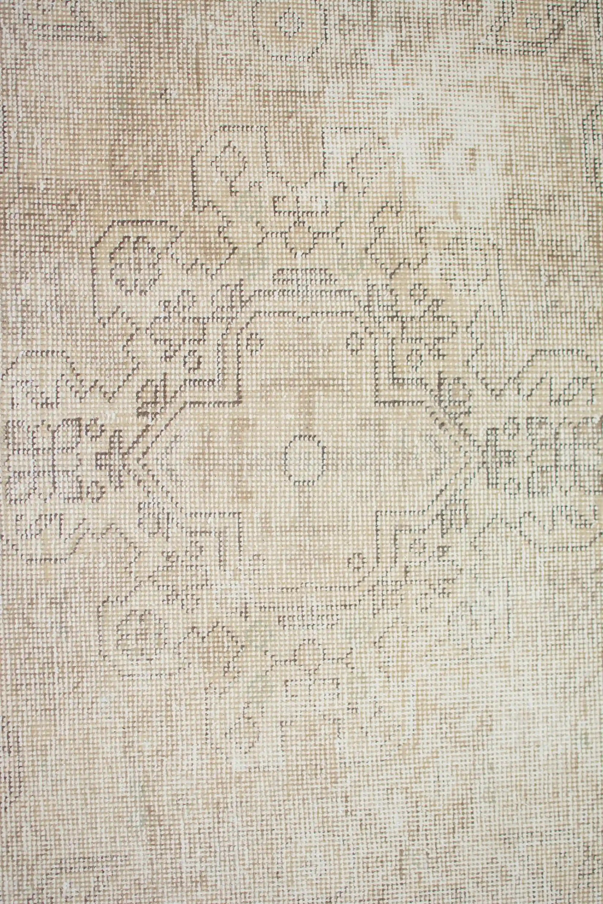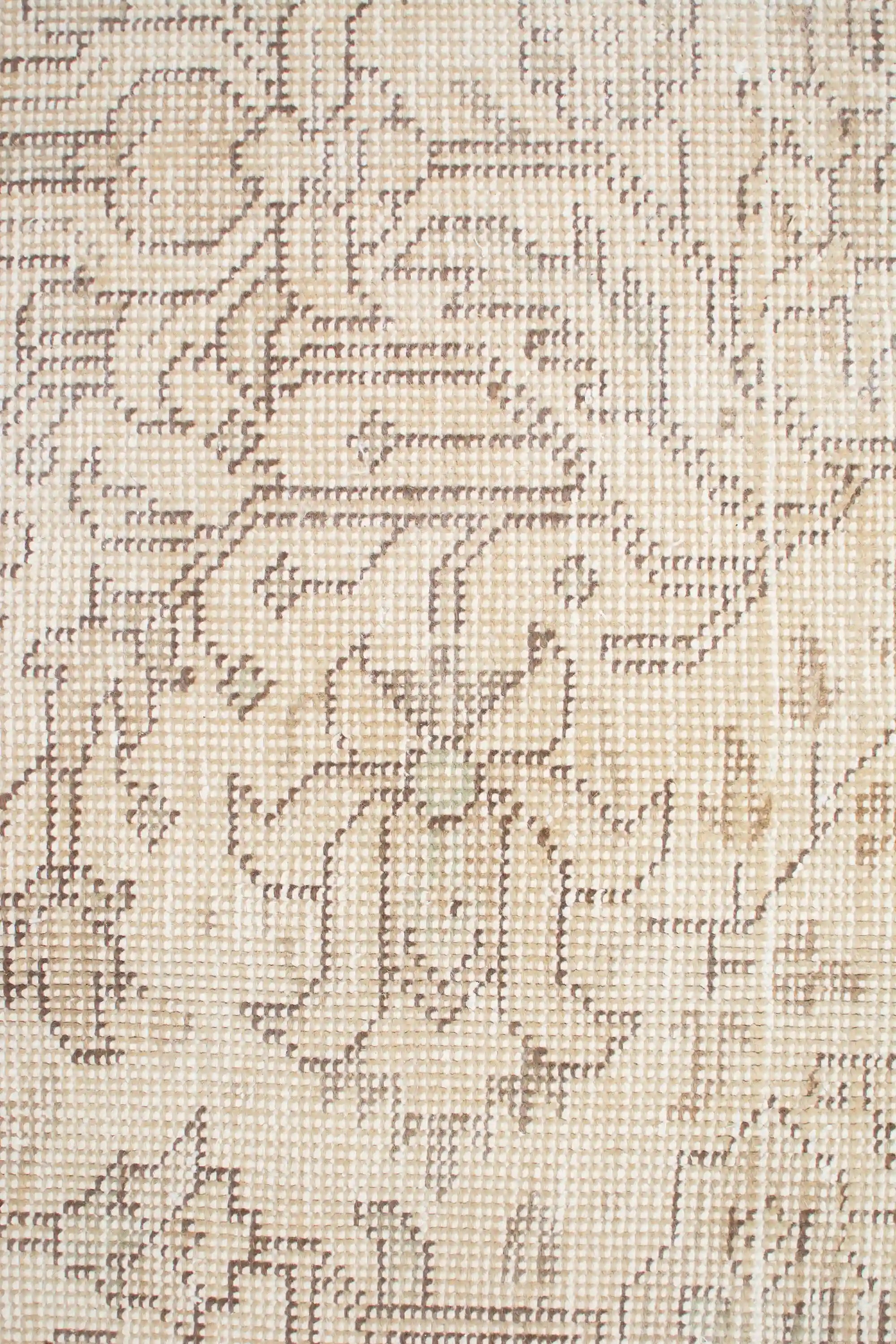Alfombra anudada a mano por artesanos, reciclada y modernizada a través de tratamientos de teñido y carving, logrando un diseño clásico con colores y texturas modernas.