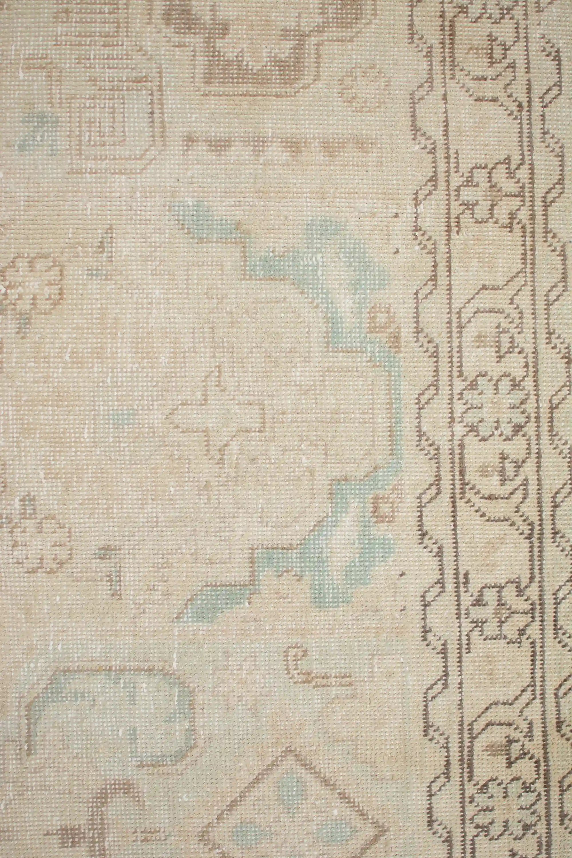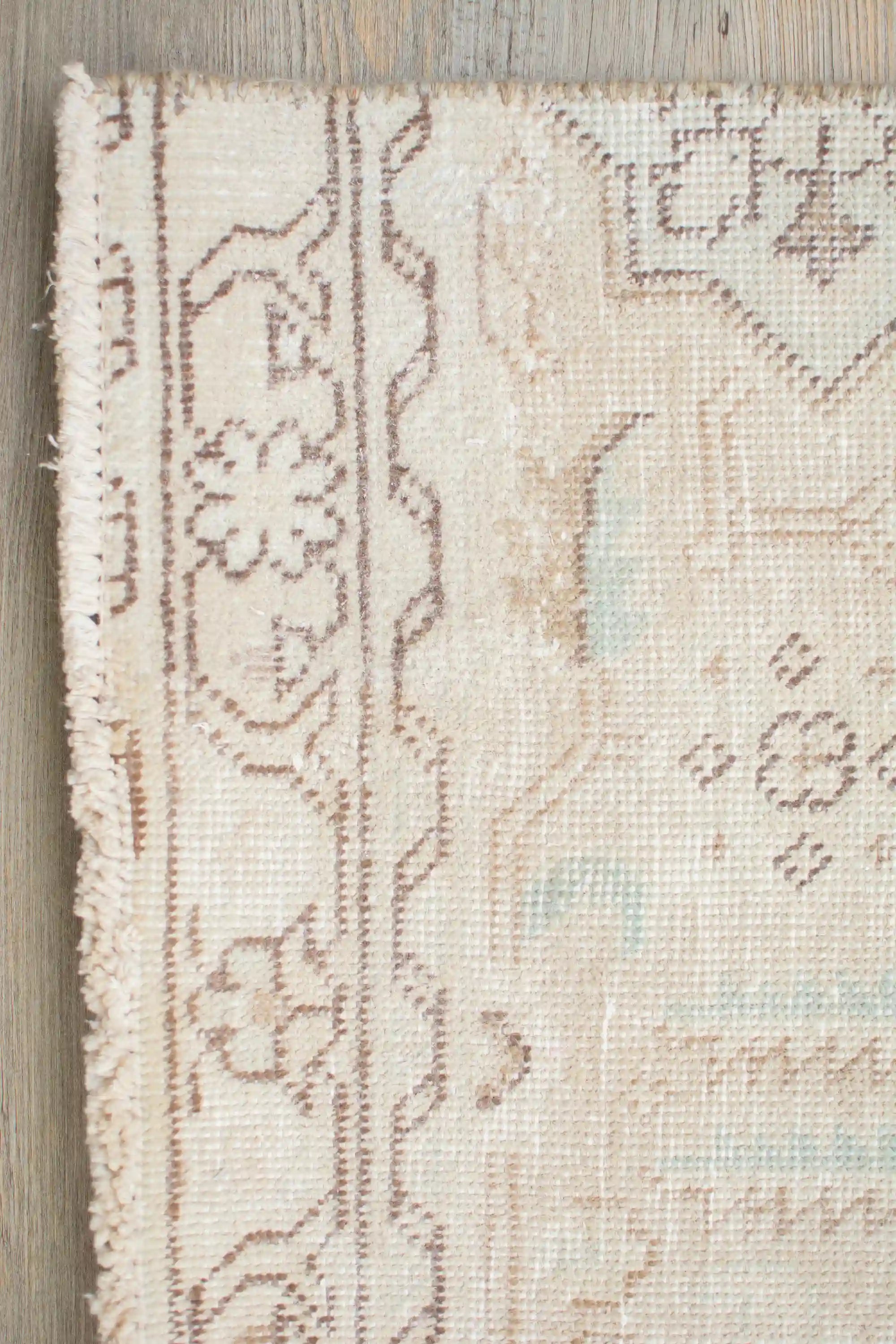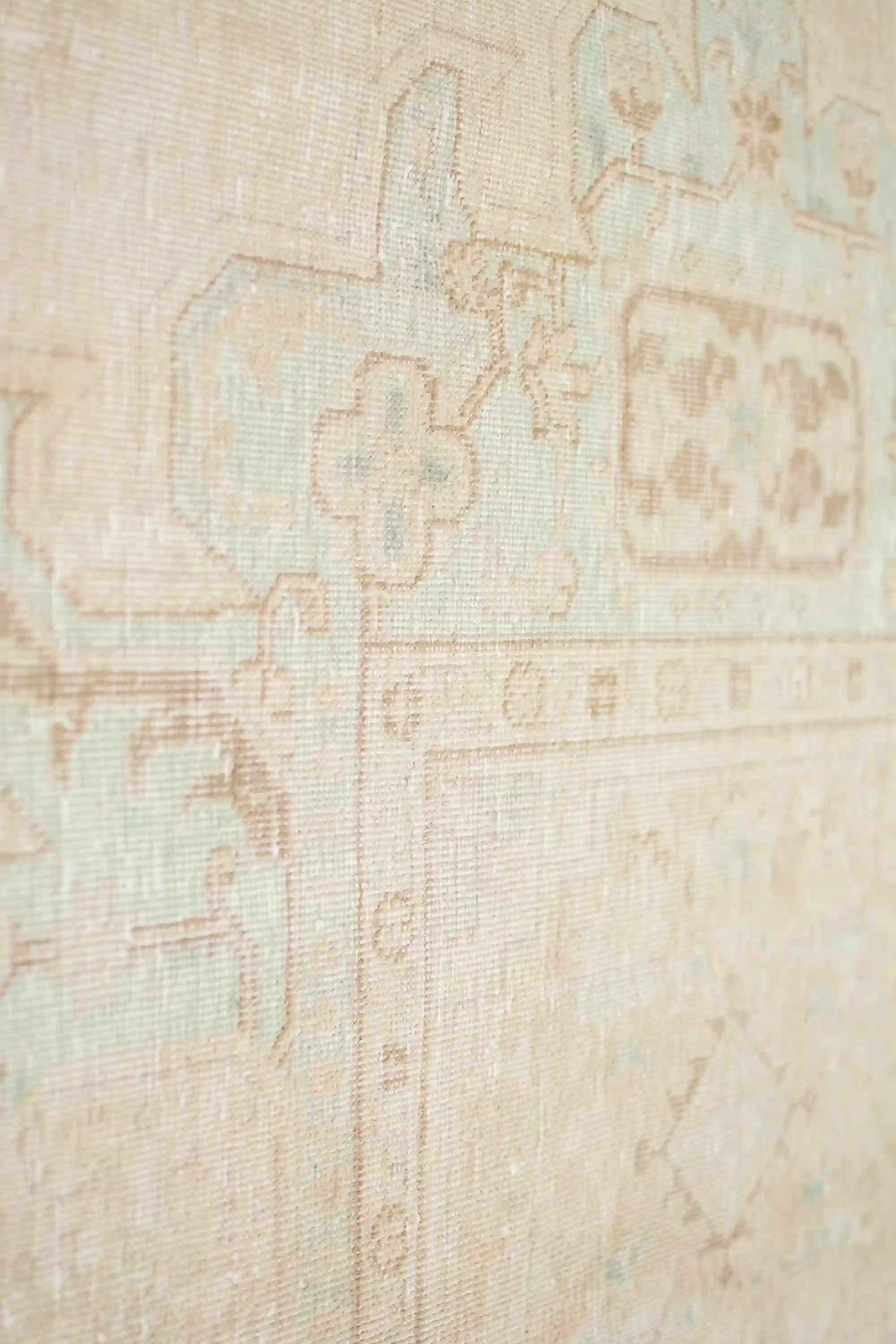 Alfombra anudada a mano por artesanos, reciclada y modernizada a través de tratamientos de teñido y carving, logrando un diseño clásico con colores y texturas modernas.
