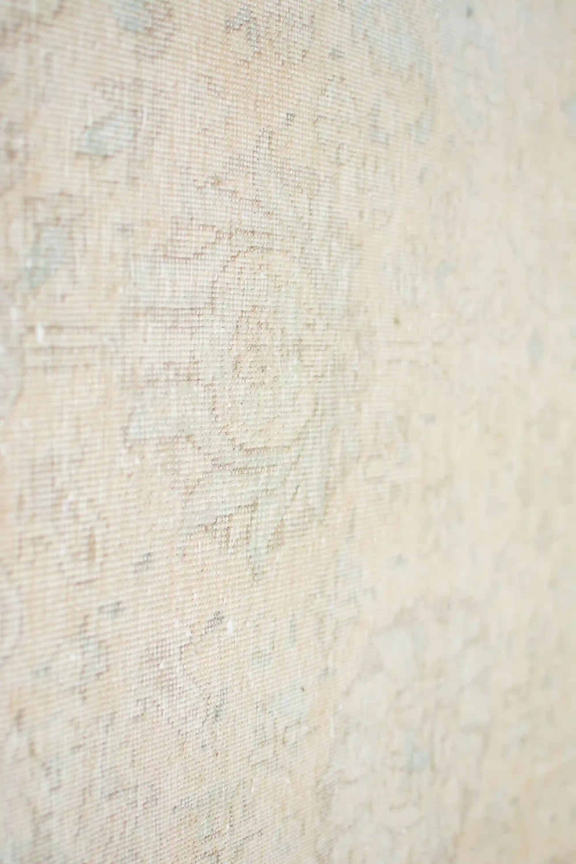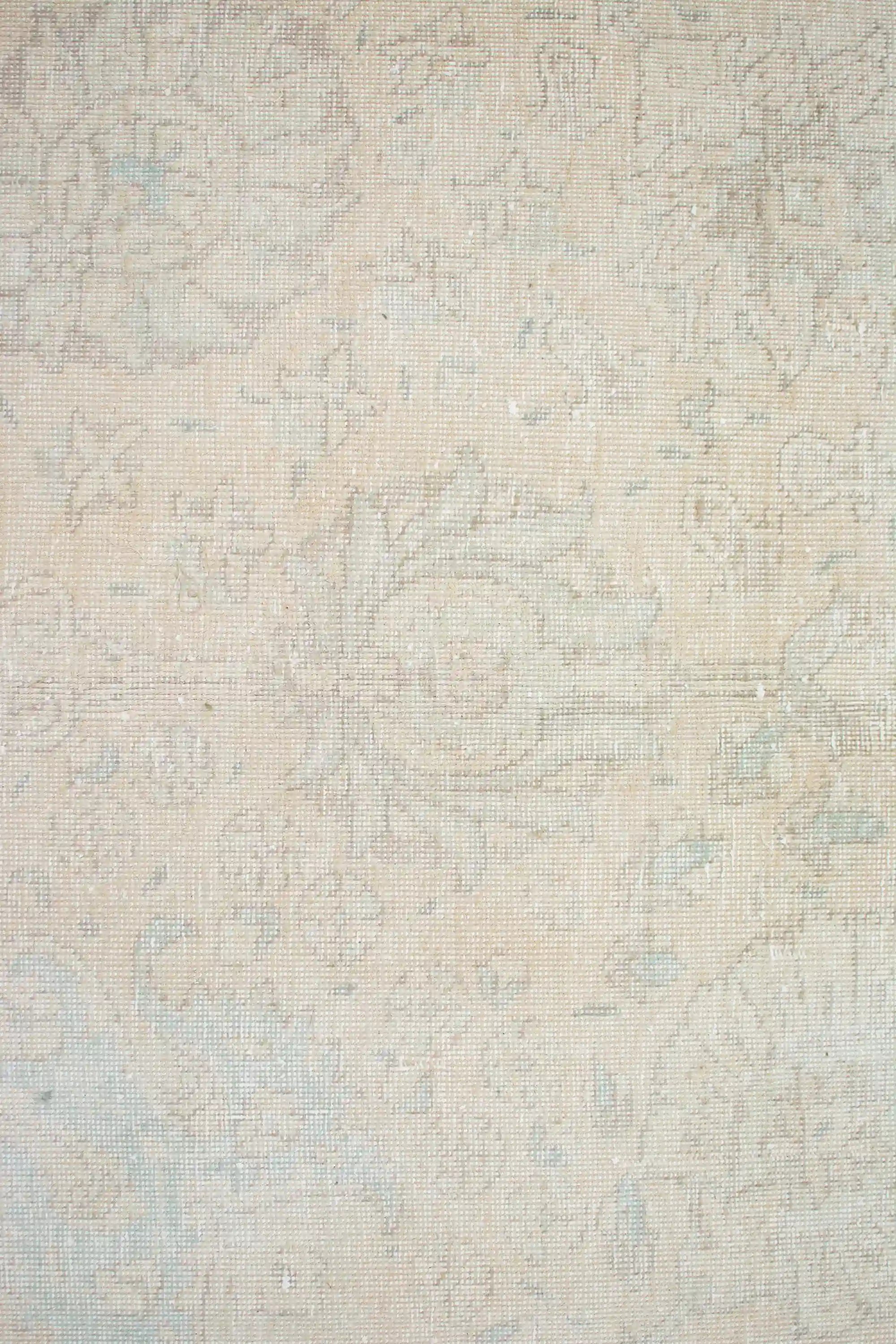 Alfombra anudada a mano por artesanos, reciclada y modernizada a través de tratamientos de teñido y carving, logrando un diseño clásico con colores y texturas modernas.