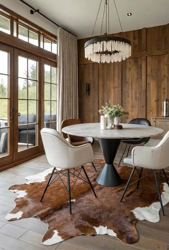 Cada cuero de vaca natural es único en diseño. Hechas de cuero de alta calidad, son duraderas y elegantes. Perfectas para cualquier espacio, añaden un toque rústico y elegante a tu hogar.