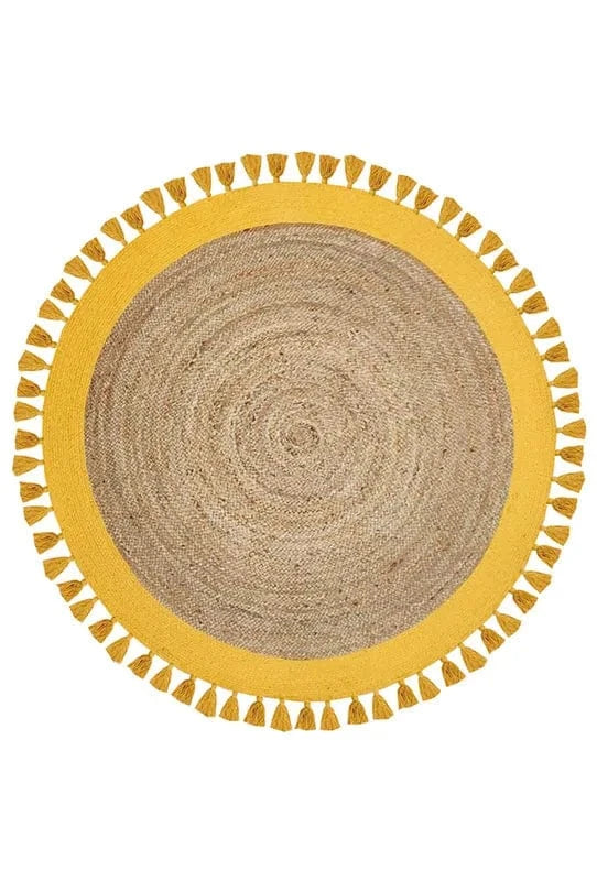 Alfombra de Yute Redonda Malibú Natural Amarillo Flecos