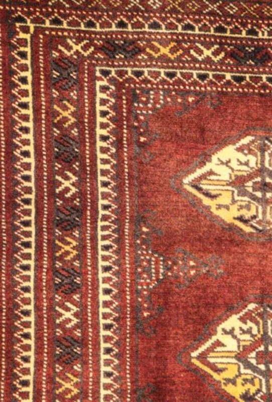 Alfombra anudada a mano por artesanos iraníes, con diseño de estilo clásico originales de las tribus nómadas Baluch, que viven en las fronteras de Irán, Paquistán y Afganistán.