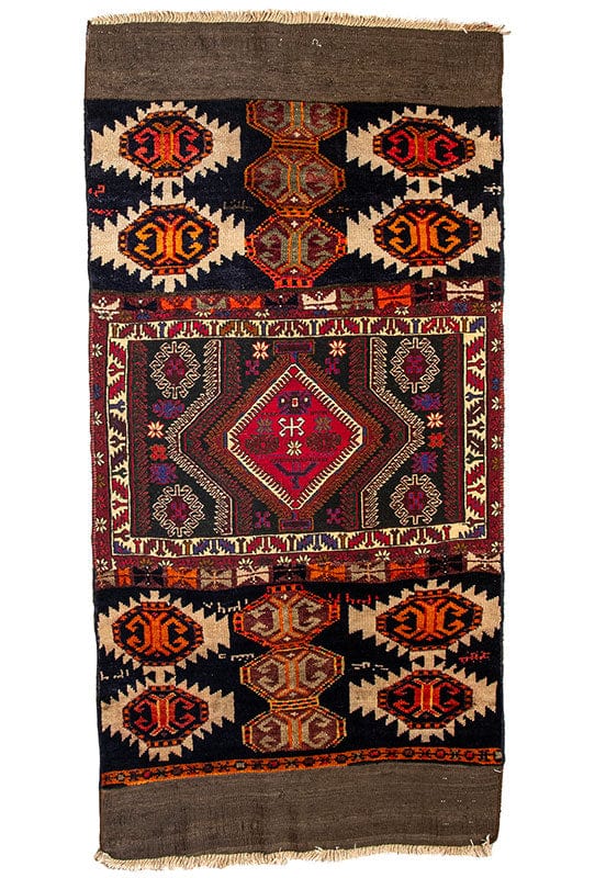 Las alforjas persas nómadas son piezas únicas de artesanía tradicional, tejidas a mano por comunidades nómadas de Irán con lana de alta calidad y tintes naturales. Originalmente diseñadas para transportar provisiones durante los viajes, su diseño incluye dos compartimentos amplios unidos por una tira central, adornados con patrones geométricos cargados de simbolismo cultural. Hoy en día, estas alforjas se han convertido en piezas decorativas versátiles, ideales como elementos decorativos o alfombras, que aportan un toque bohemio y auténtico a cualquier espacio, combinando funcionalidad con la rica historia del arte textil persa.