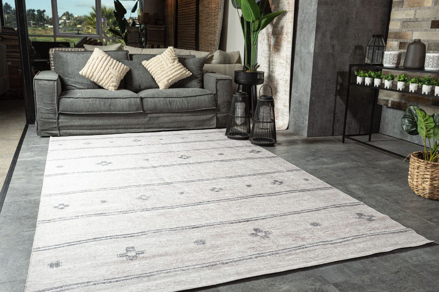 Alfombra Lavable Étnica Kendi Nor H0813 GREY Nuevo