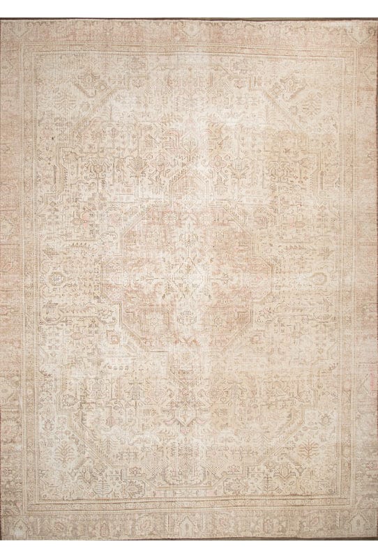 Alfombra anudada a mano por artesanos, reciclada y modernizada a través de tratamientos de teñido y carving, logrando un diseño clásico con colores y texturas modernas.