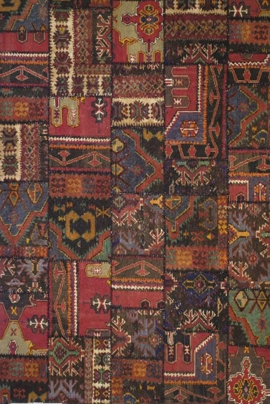 Alfombra anudada a mano por artesanos, reciclada y modernizada a través de tratamientos de teñido y carving, logrando un diseño clásico con colores y texturas modernas.